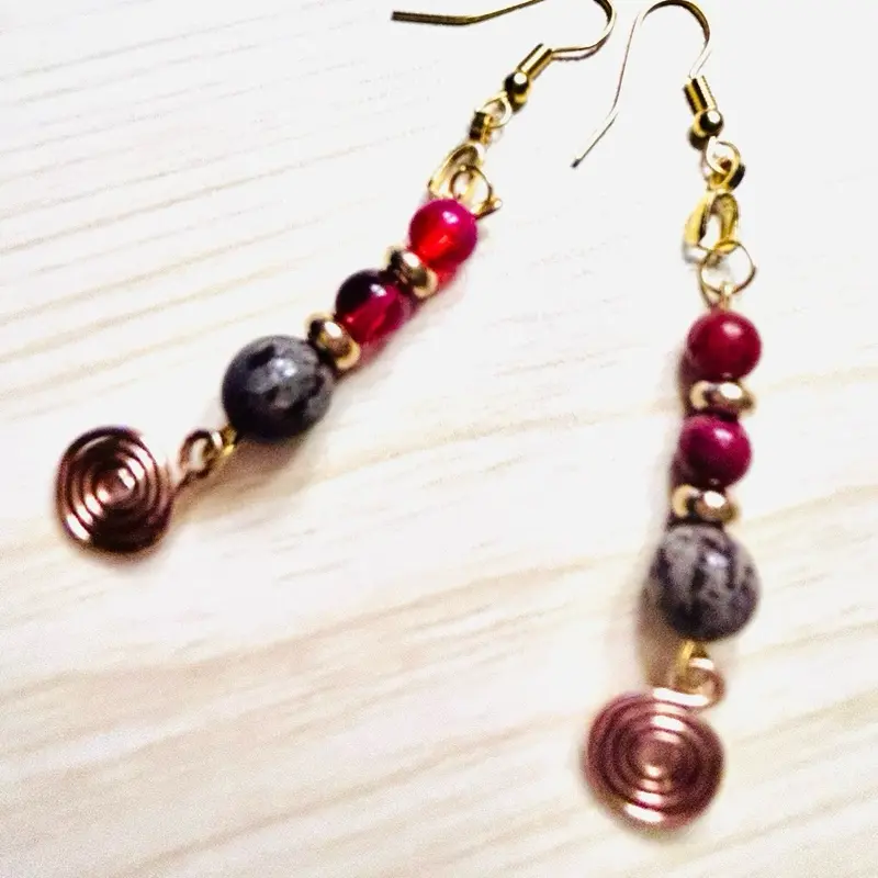 Inspired by the warmth of the earth and glowing embers, these handcrafted earrings blend rich red tones with natural stone textures and a delicate spiral accent.