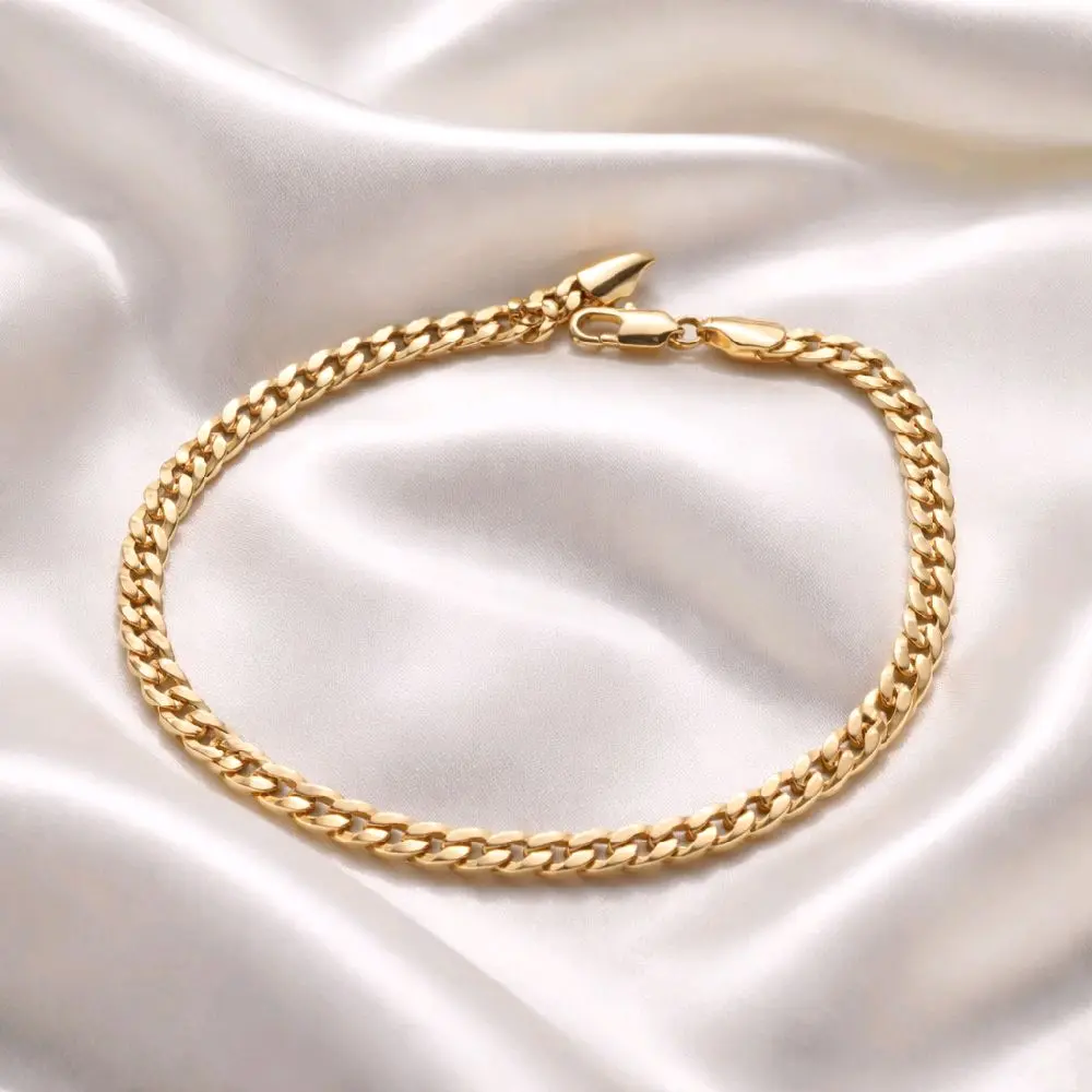 Cuban Link 3mm Anklet - Gold Color Chain Bracelet for Women, Elegant Design, Perfect for Daily Wear