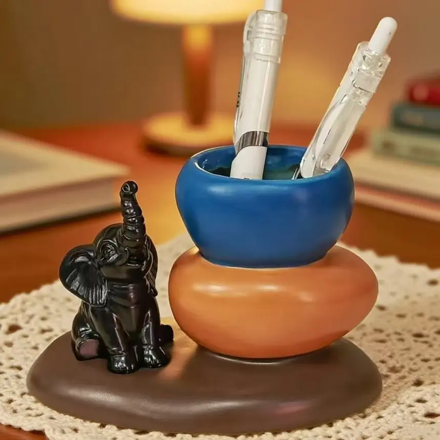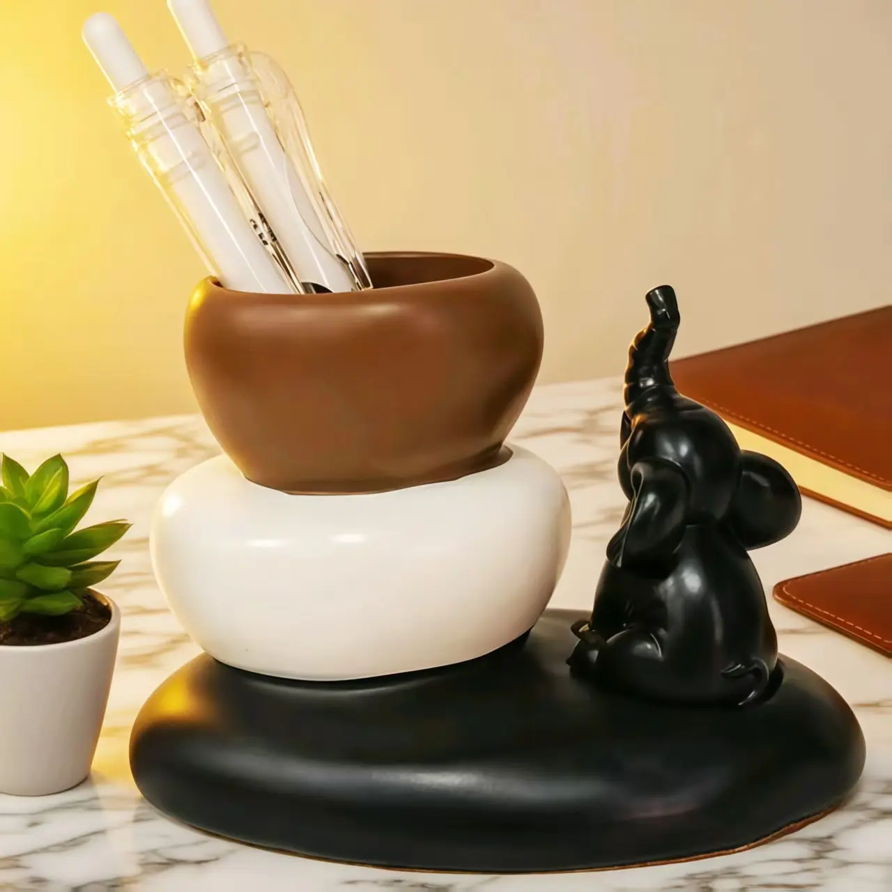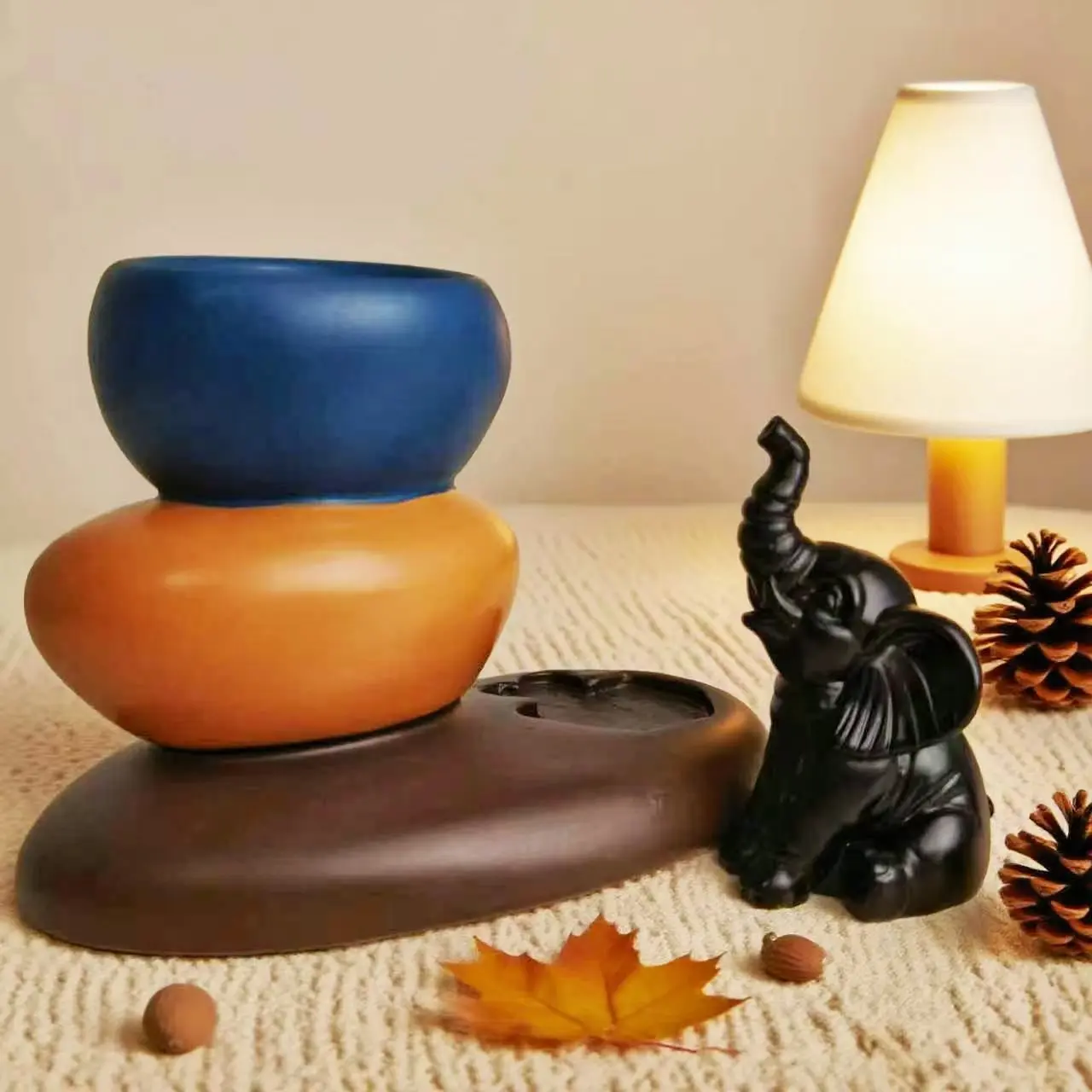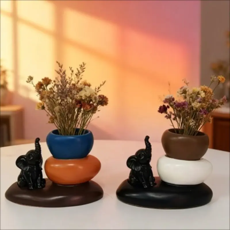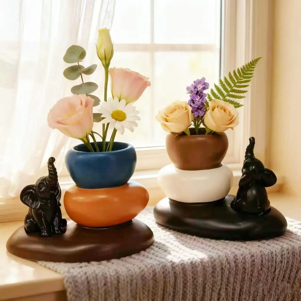 Creative Two-Color Elephant Stack Stone Vase Set, Nordic Style Color Block Design, Living Room Entryway Atmosphere Soft Decor, Home Gift