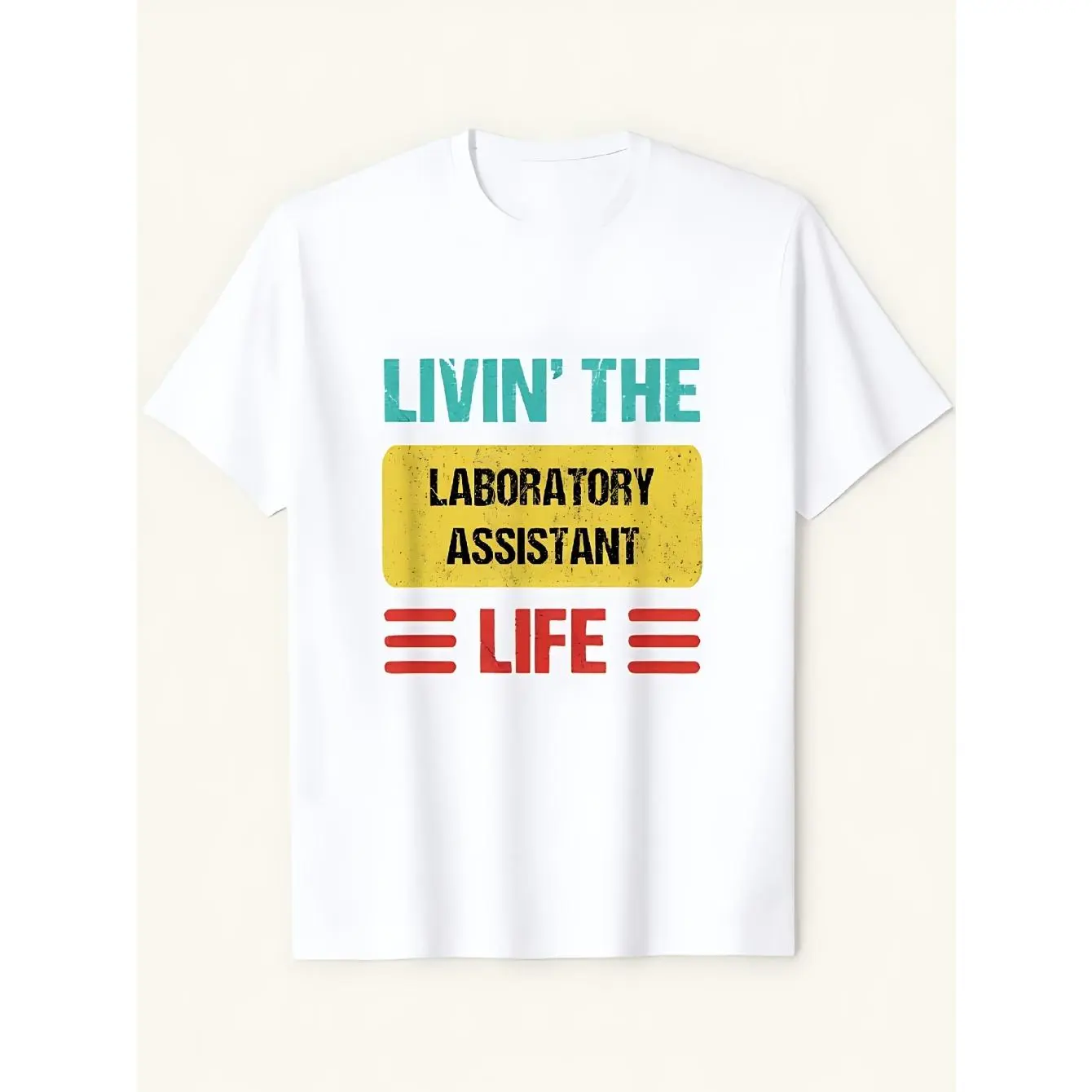 Women's laboratory assistant lifestyle Graphic T-Shirt - Short Sleeve Crew Neck Regular Fit Casual Wear | Soft & Breathable Fabric, Durable Print, Everyday Comfort, Machine Washable, casual and retro everyday wear, possibly for work or leisure in a