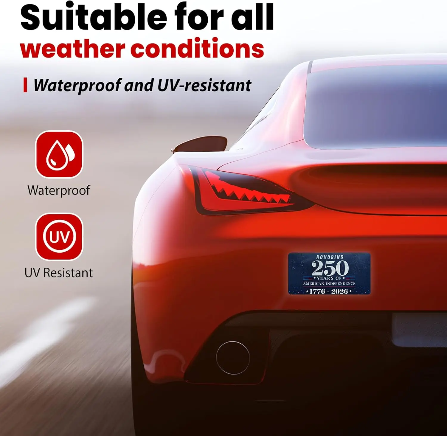 ·PREMIUM QUALITY MATERIAL: Made from durable PVC with UV printing technology that resists fading, weathering, and wear for long-lasting outdoor use on vehicles