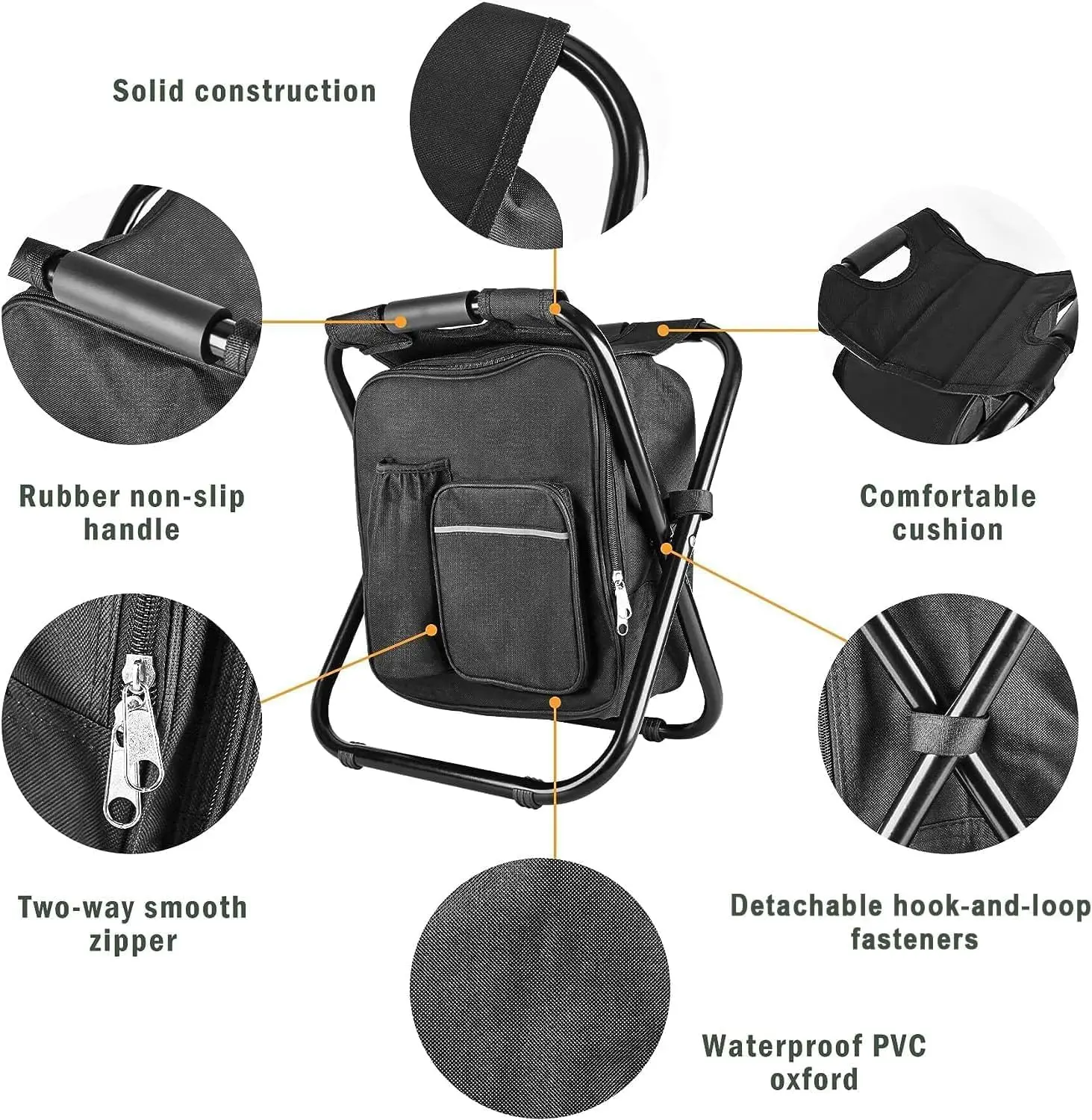 Camping Chair Backpack Grey – Foldable Fishing Stool