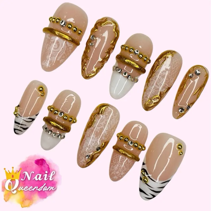 Nail Queendom [GOLDEN VEIL] Handcrafted 3D Press-On Nails
