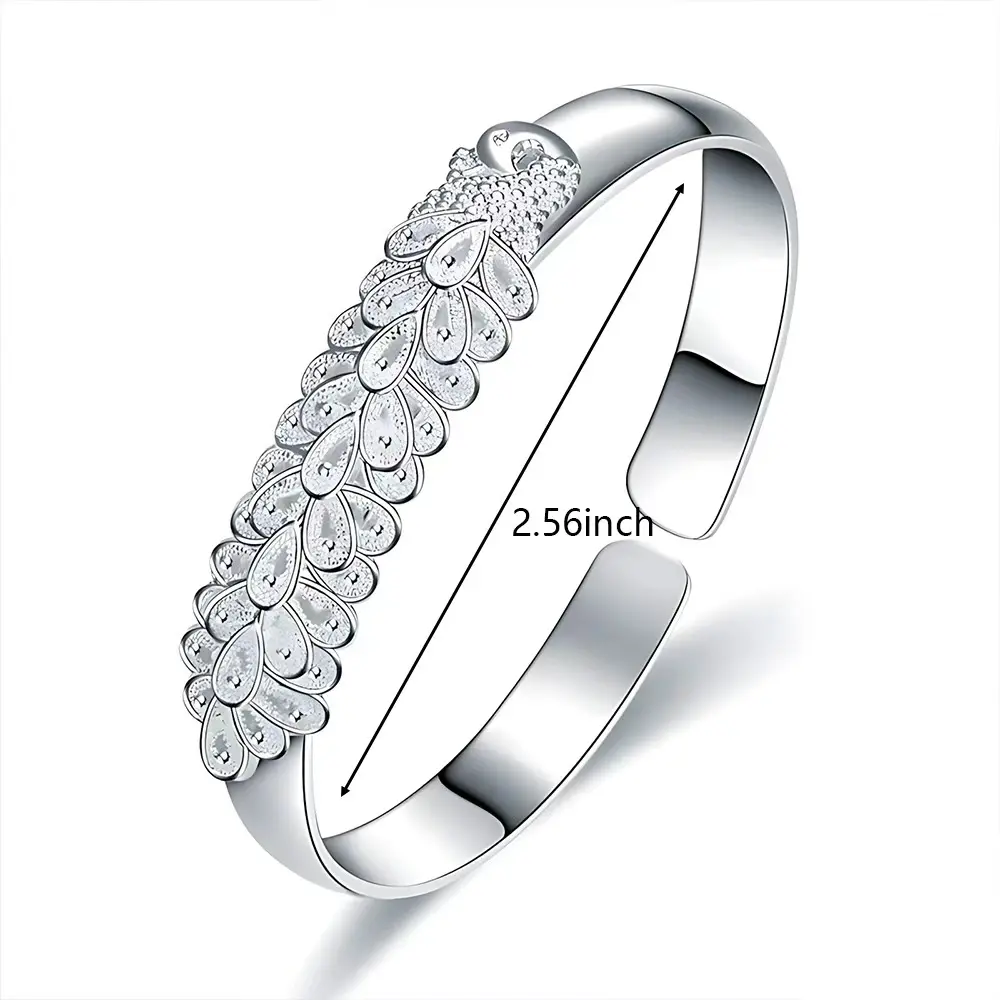 ✨ Discover the 1PCS Silver Plated Peacock Opening Screen Bracelet, a luxurious accessory for women. Inspired by the peacock's grace, this bracelet boasts a detailed textured design. Its shimmering silver finish complements both casual and dressy outfits. Ideal for parties, dinners, or special occasions, it's a thoughtful gift for women who love unique jewelry.