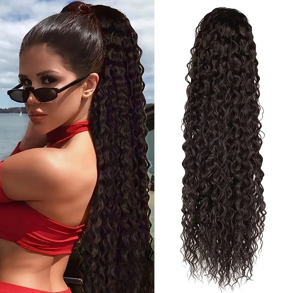 22inch Synthetic fiber wavy drawstring ponytail wig, suitable for women's hair extensions