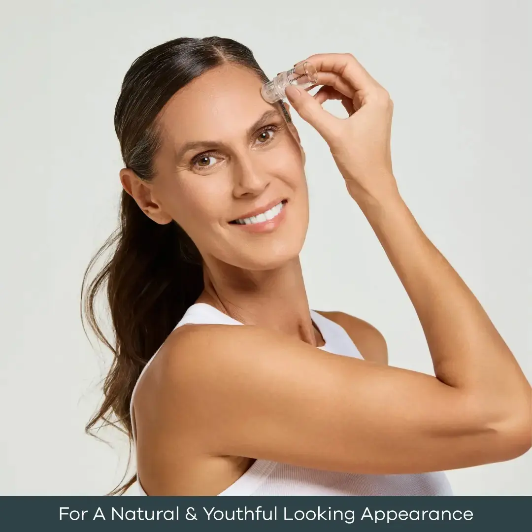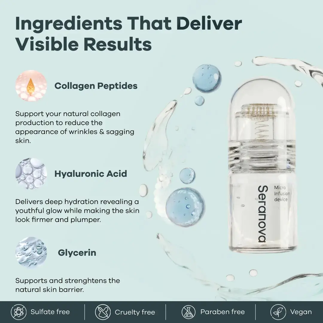 Seranova’s Micro Infusion System is an at-home precision delivery tool designed to help you get more out of your skincare. Using ultra-fine, cosmetic-grade touchpoints, it creates temporary surface pathways that help enhance serum absorption—bringing key ingredients closer to where they can help skin look smoother, plumper, and more refreshed over time. Most users describe a light tingling sensation with minimal to no discomfort.