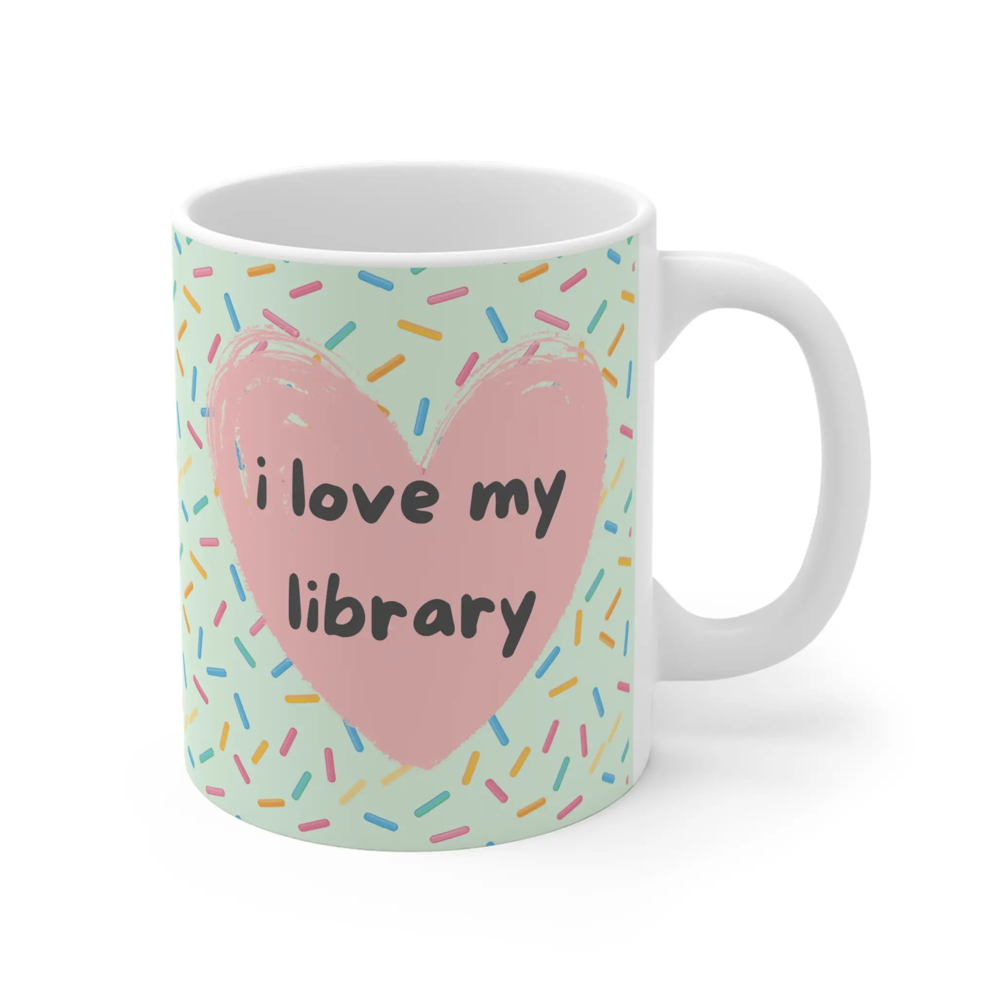 i love my library Sprinkle Confetti Pattern Mug | Pastel Donut Sprinkles Ceramic Coffee Cup librarian gift book lover reader gift