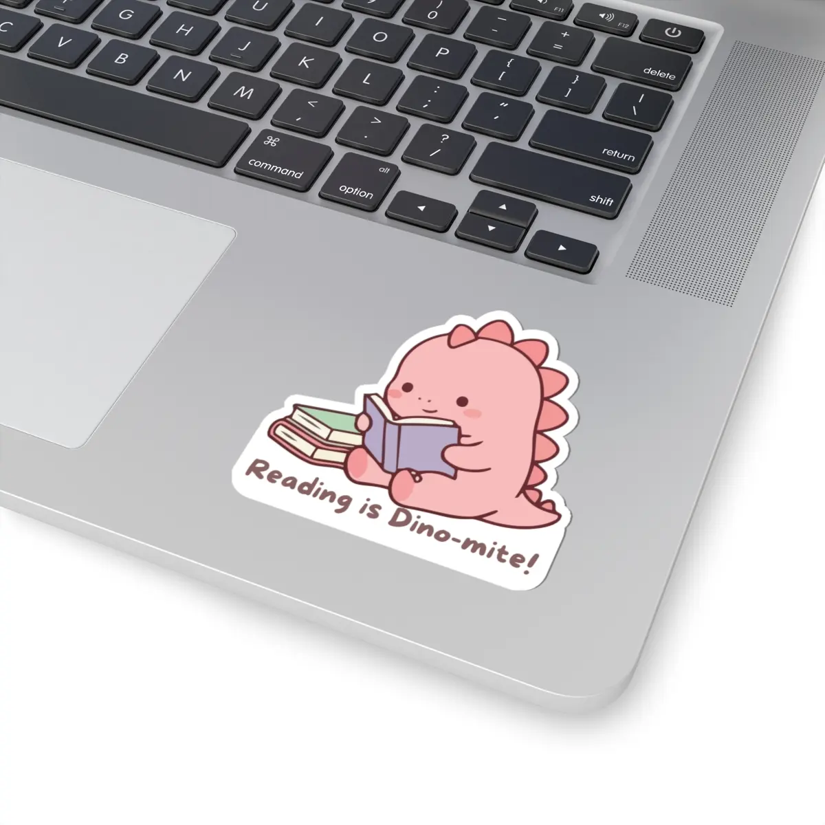 Little readers, big smiles. This glossy kiss-cut sticker features an adorable pink dino curled around a book, captioned “Reading is Dino-mite!” It brings a soft, playful charm to laptops, journals, water-free indoor decor, and anywhere you want a tiny reminder that reading is fun. The smooth, scratch-resistant finish keeps colors bright while the strong permanent vinyl backing clings to flat surfaces for long-lasting cheer. Sized options and white or transparent backgrounds let you choose how boldly the design stands out — great for adding a warm, whimsical touch to study nooks, bookclub swag, classroom rewards, or a cozy reading corner.