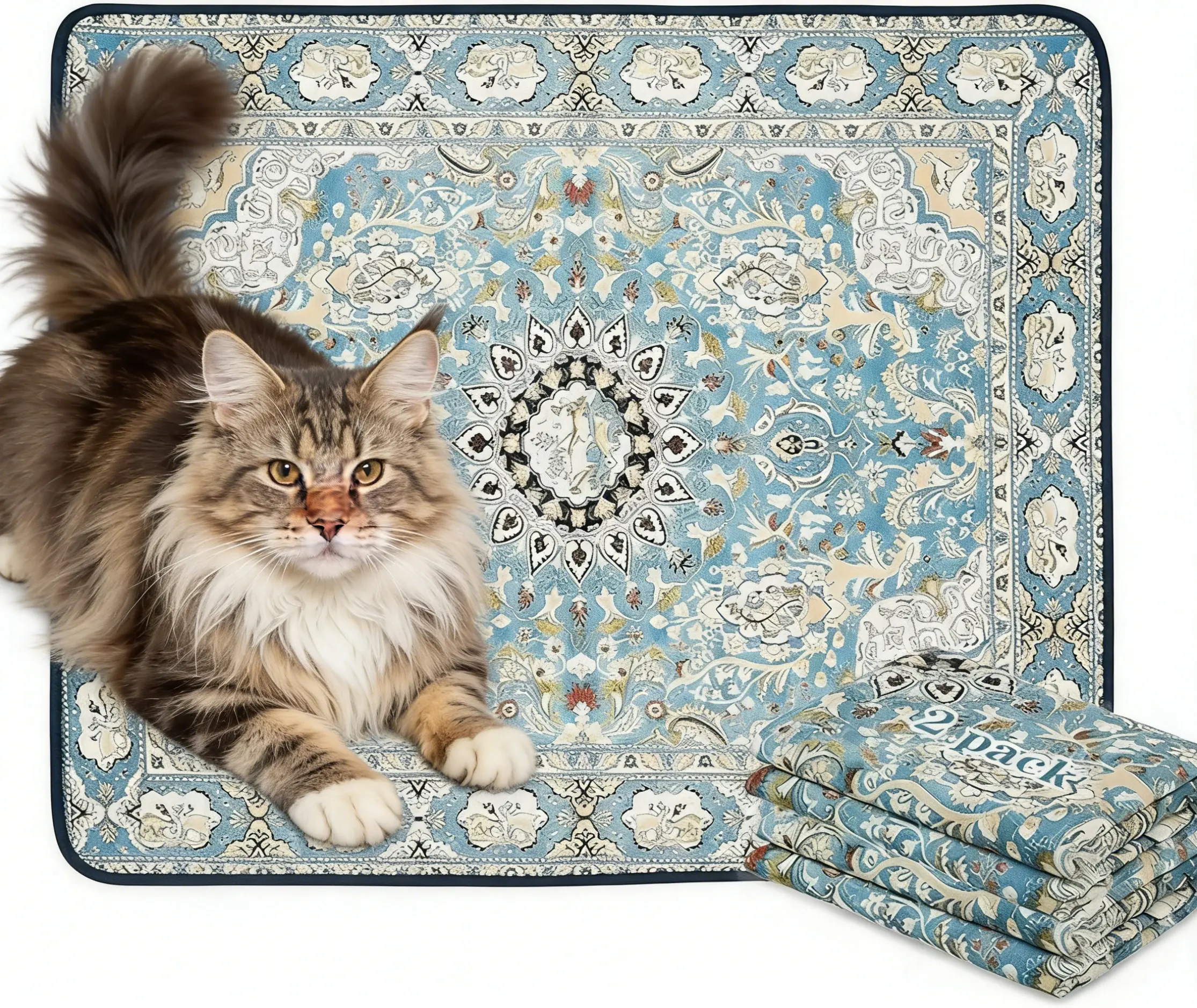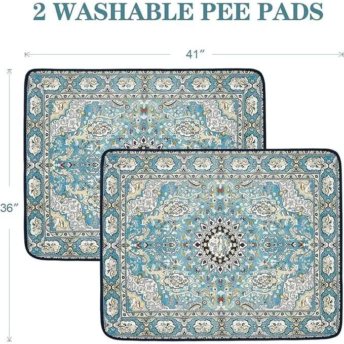 Premium Washable Cat Litter Mat - 2 Pack, 36" x 41" Super Absorbent Leak-Proof Training Pad, Non-Slip Whelping Mat, Suitable for Litter Box Areas and Pets