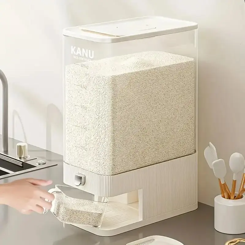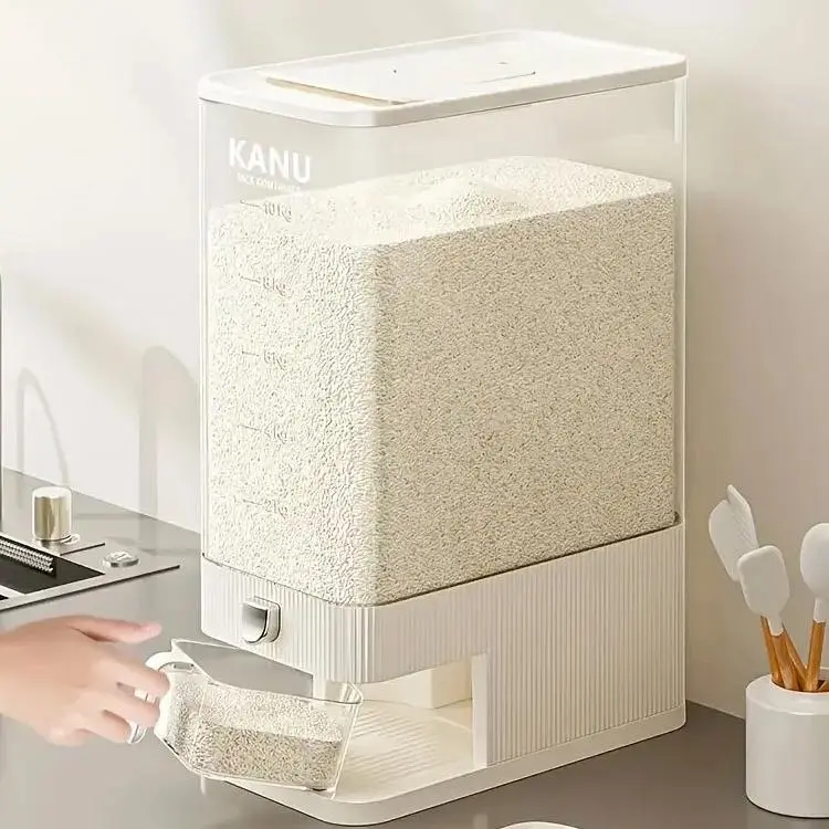 This high-capacity dispenser securely stores a generous supply of rice and small grains—perfect for keeping ingredients fresh and readily available.Please note: Actual capacity may vary based on grain size and type. Not recommended for fine powders such as flour or oats, or large pet food.