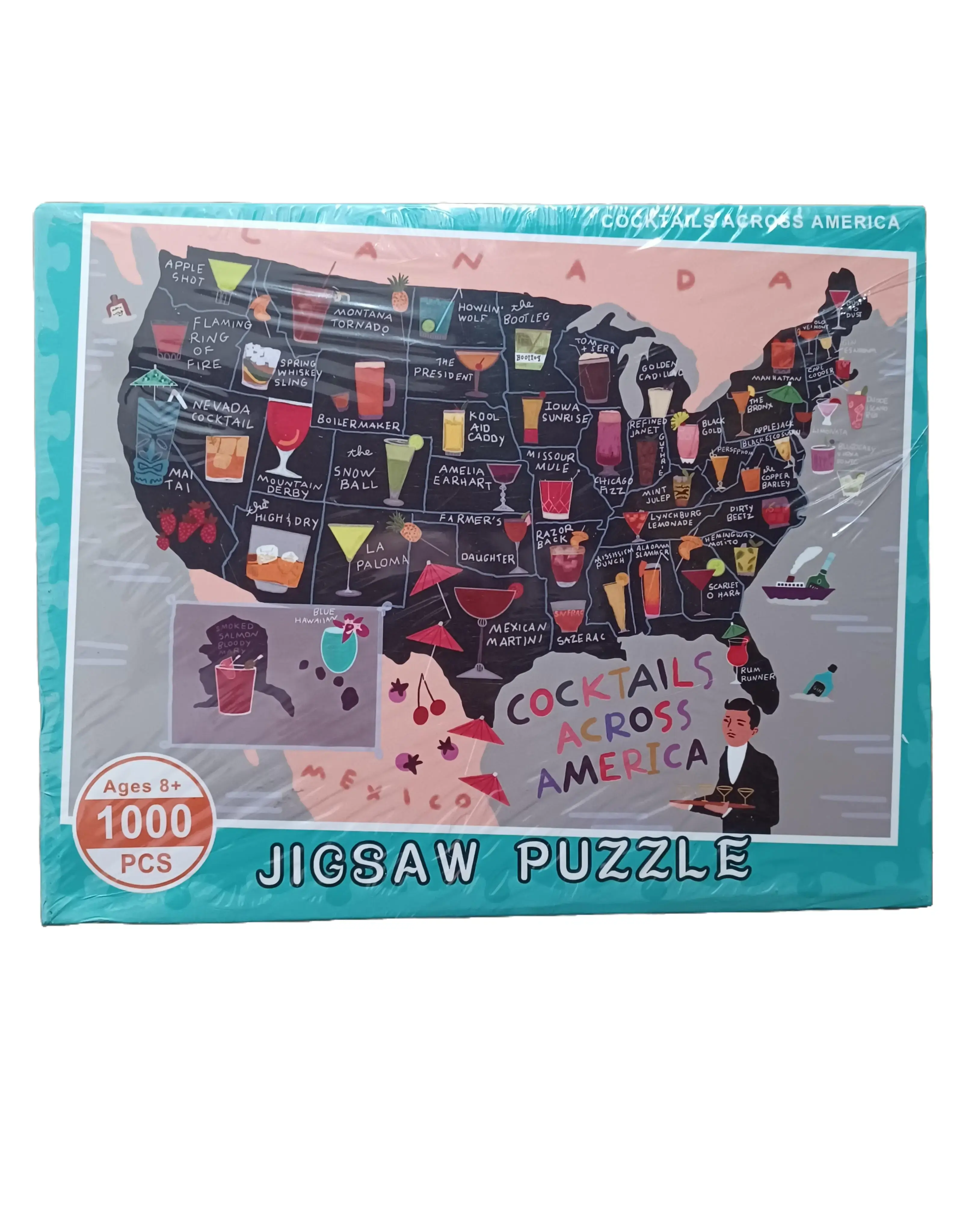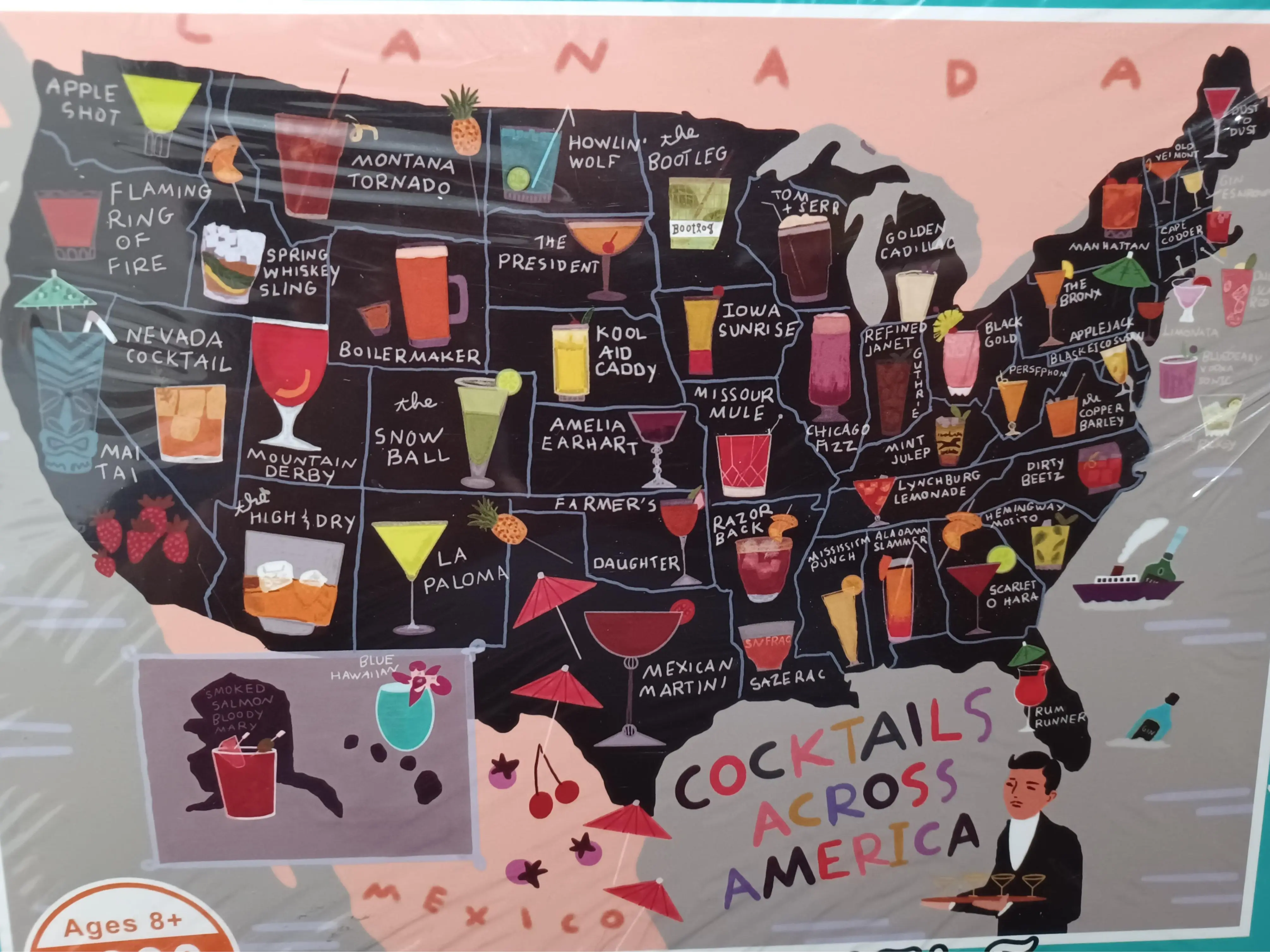 The Galison "Cocktails Across America" 1,000-piece jigsaw puzzle, illustrated by Anne Bentley, features a colorful map highlighting signature drinks from all 50 states. Measuring 70cm” x 50cm” when completed, this high-quality puzzle features sturdy, minimal-dust pieces with a white matte finish, making it a perfect, engaging gift for cocktail enthusiasts