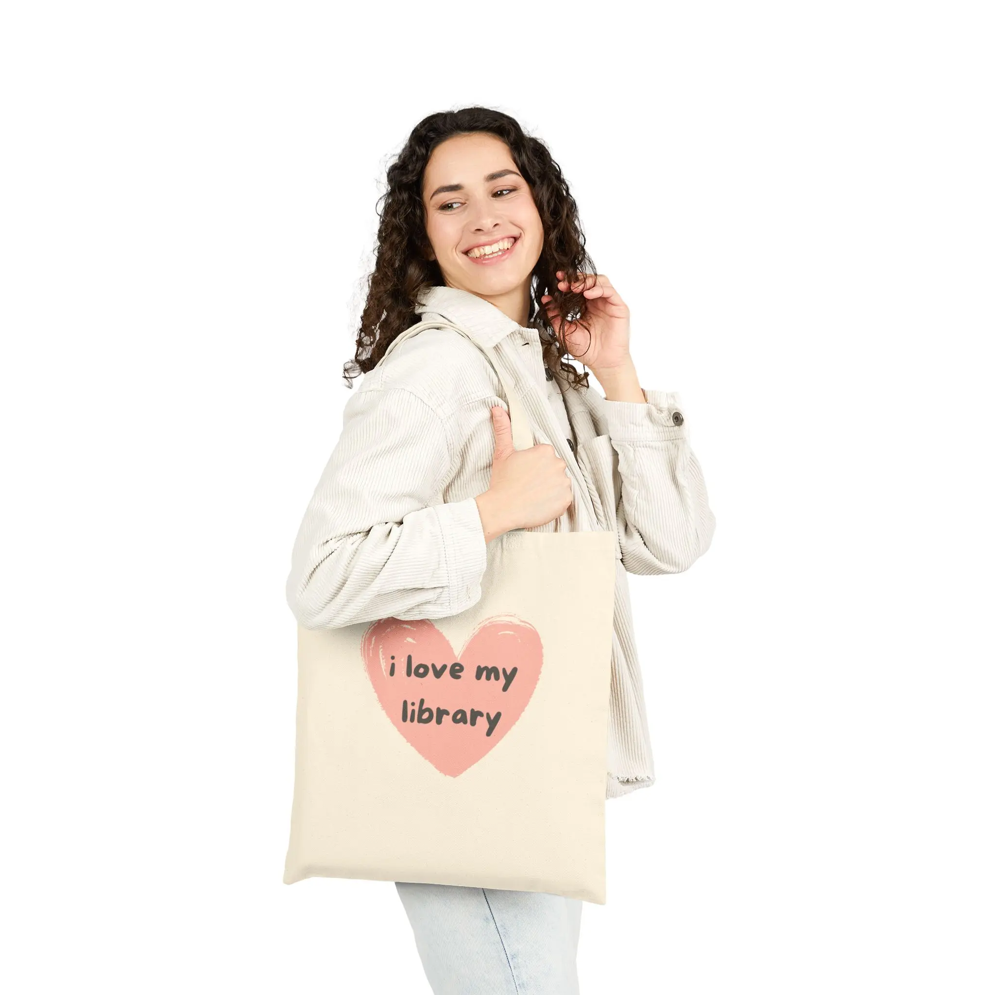 Carry a quiet bookshelf of joy wherever you go. This sturdy cotton canvas tote reads “i love my library” inside a soft, hand-painted heart — a subtle shout-out to quiet afternoons, overdue returns, and the small rituals of readers. The heavy canvas holds your stack of paperbacks, journals, and a thermos without sagging. The flat, slim profile tucks easily into a bike basket or under your arm between errands. It’s the sort of bag that starts conversations in line, slips over shoulders on rainy mornings, and reminds you (and others) that libraries matter.