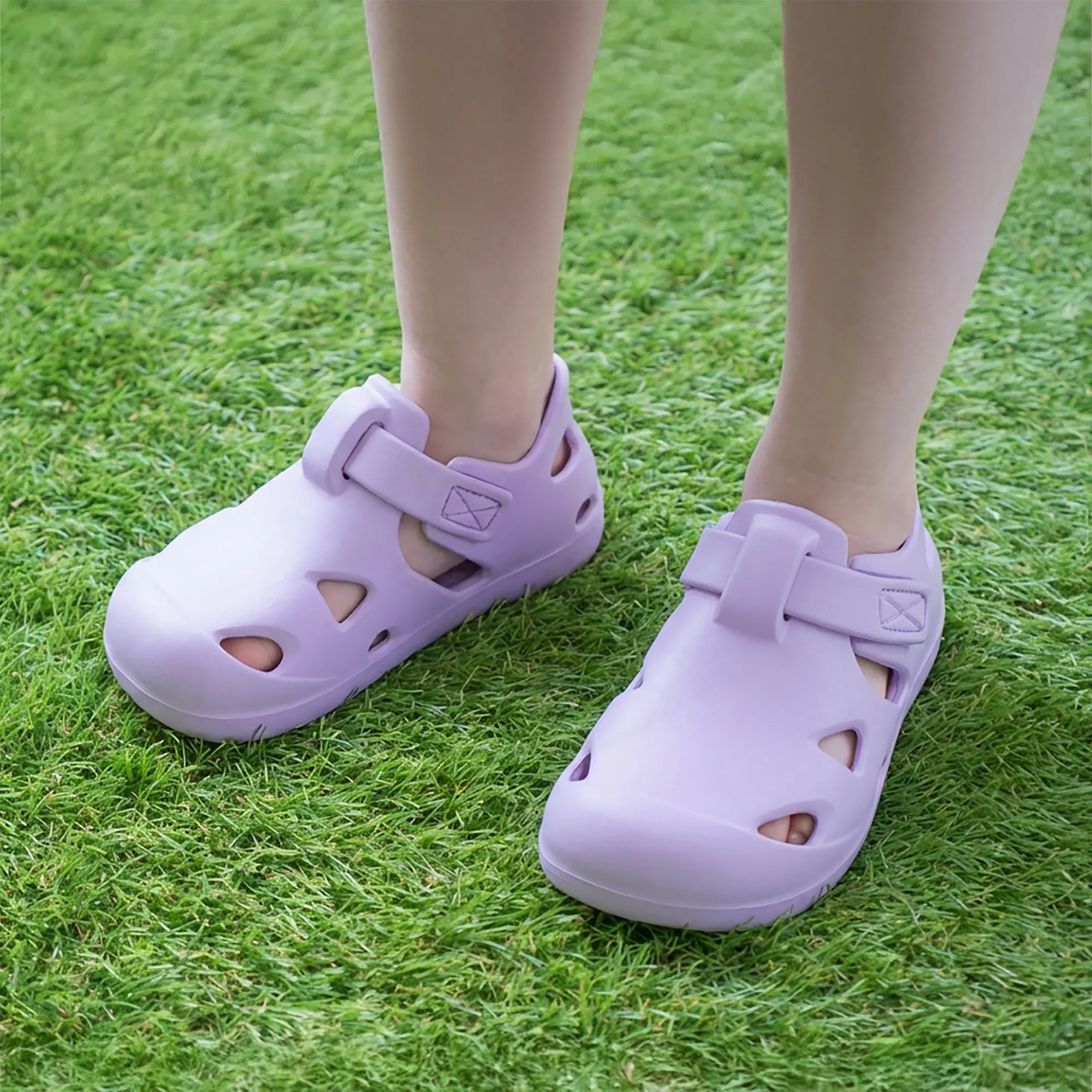 ·[MULTI-TERRAIN PROTECTION] – WET & DRY VERSATILITY A true hybrid shoe for summer adventures. The closed-toe cap protects against rocks and wood chips, while the non-slip traction outsole provides grip on wet splash pad surfaces. Use Cases: Ideal for swimming lessons, camping trips, playground mulch, and sandy beaches. Care: Quick-drying material that is easy to rinse clean.