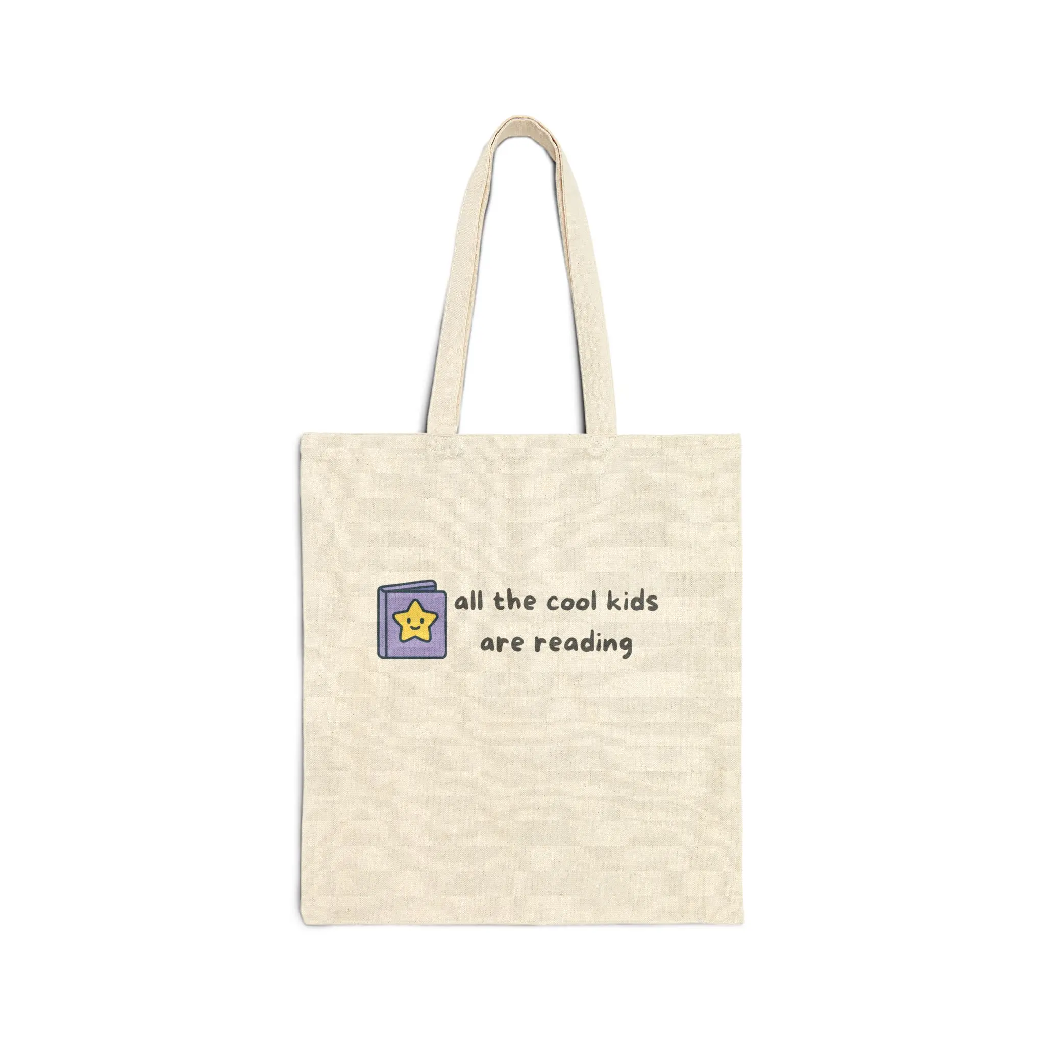 Light, sturdy, and quietly clever — this cotton canvas tote carries more than just books. Made from heavy 12 oz canvas with flat corners and reinforced self-fabric handles, it holds your library haul, market finds, or daily essentials without sagging. A small, whimsical embroidered-style design that reads “all the cool kids are reading” sits on the front, a soft nod to fellow readers and low-key bookish pride. Choose natural for a warm, organic look or black for a bolder contrast. It wears in beautifully and becomes part of your everyday rhythm: coffee shop runs, campus commutes, and weekend bookshop afternoons.