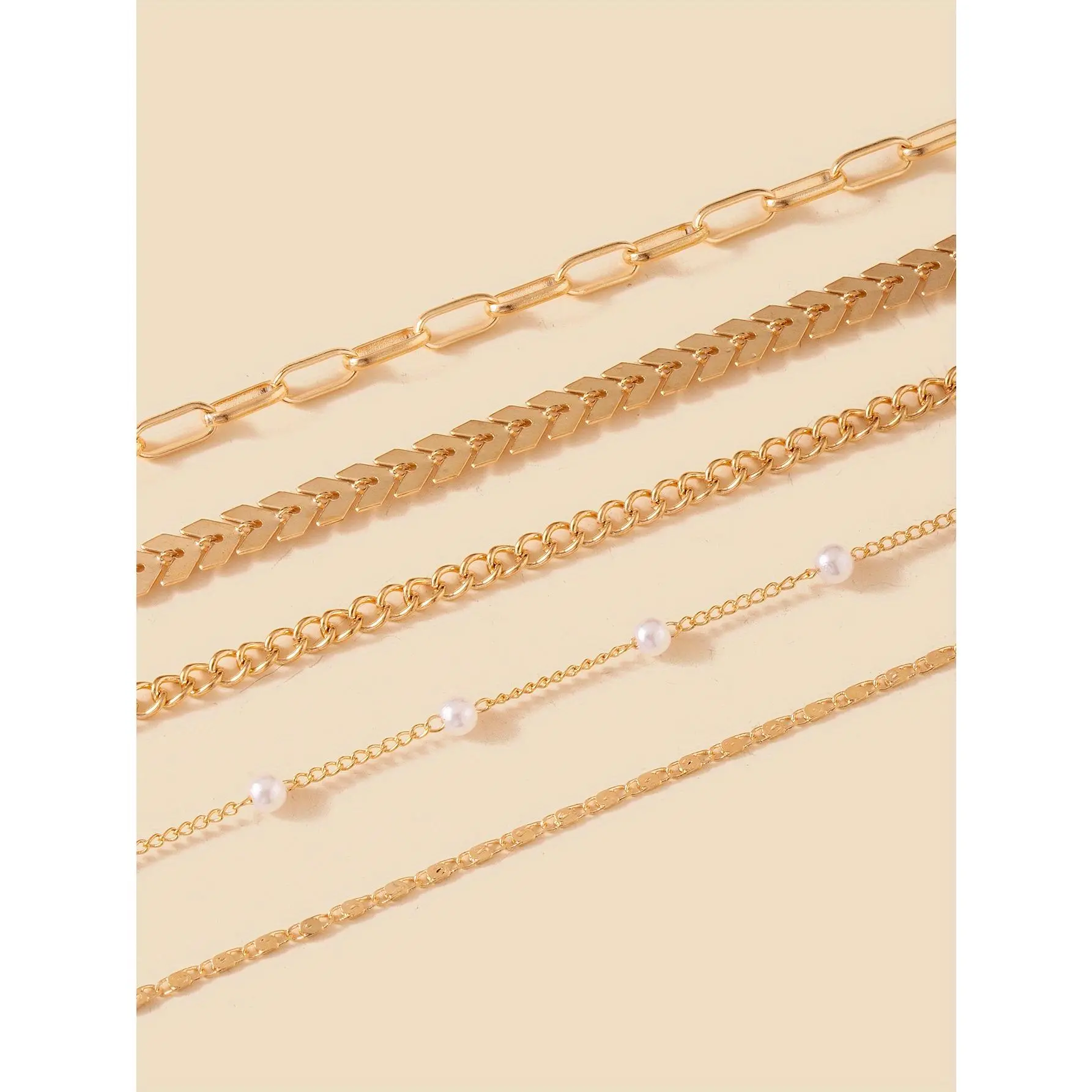 5 Pieces Minimalist Style Stackable Thin Chain Anklet Copper Ankle Bracelet Set, Suitable for Women's Daily Wear