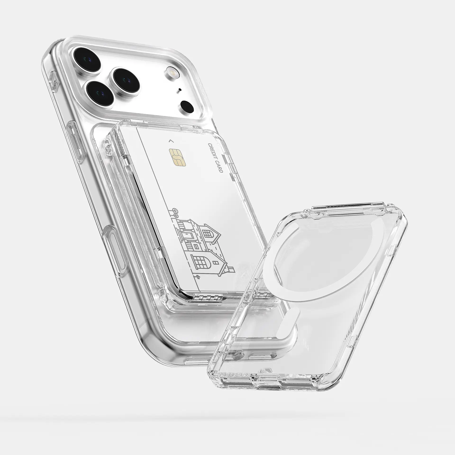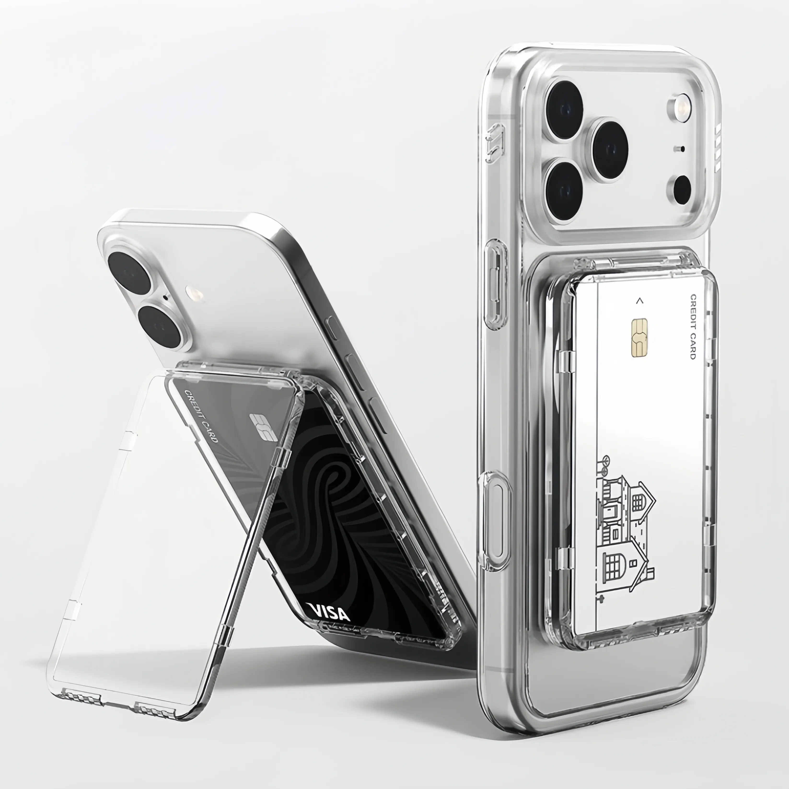 📱 PC Transparent Foldable Flip Magnetic Card Holder Stand