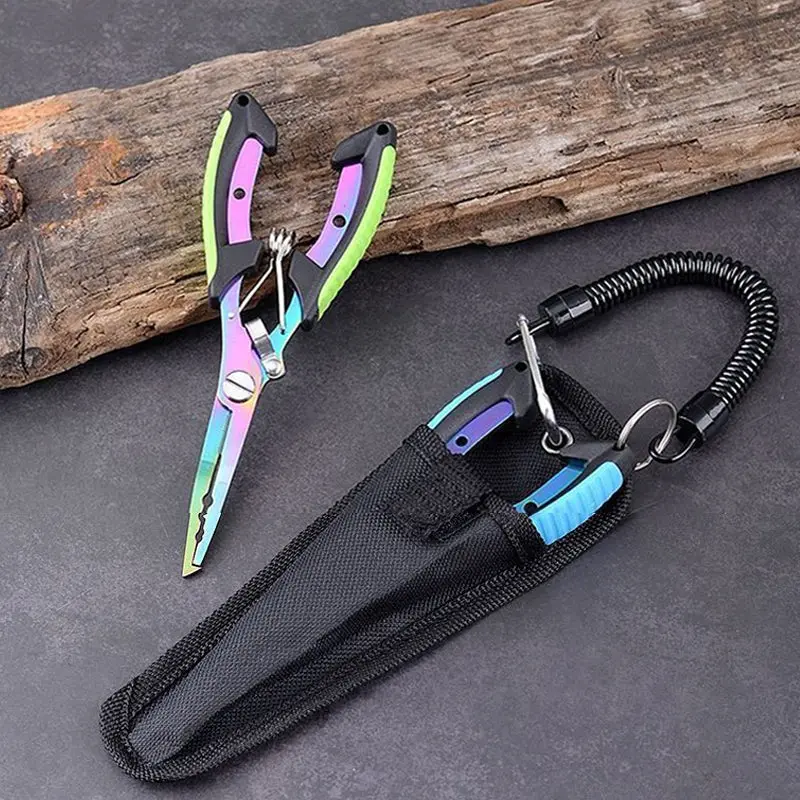 3-in-1 design (hook remover/line cutter/split ring opener) • Long eagle-beak jaws • 420 stainless steel (titanium coating) • Spring-loaded one-hand operation • Anti-slip rubber grip • Portable (sheath + lanyard)