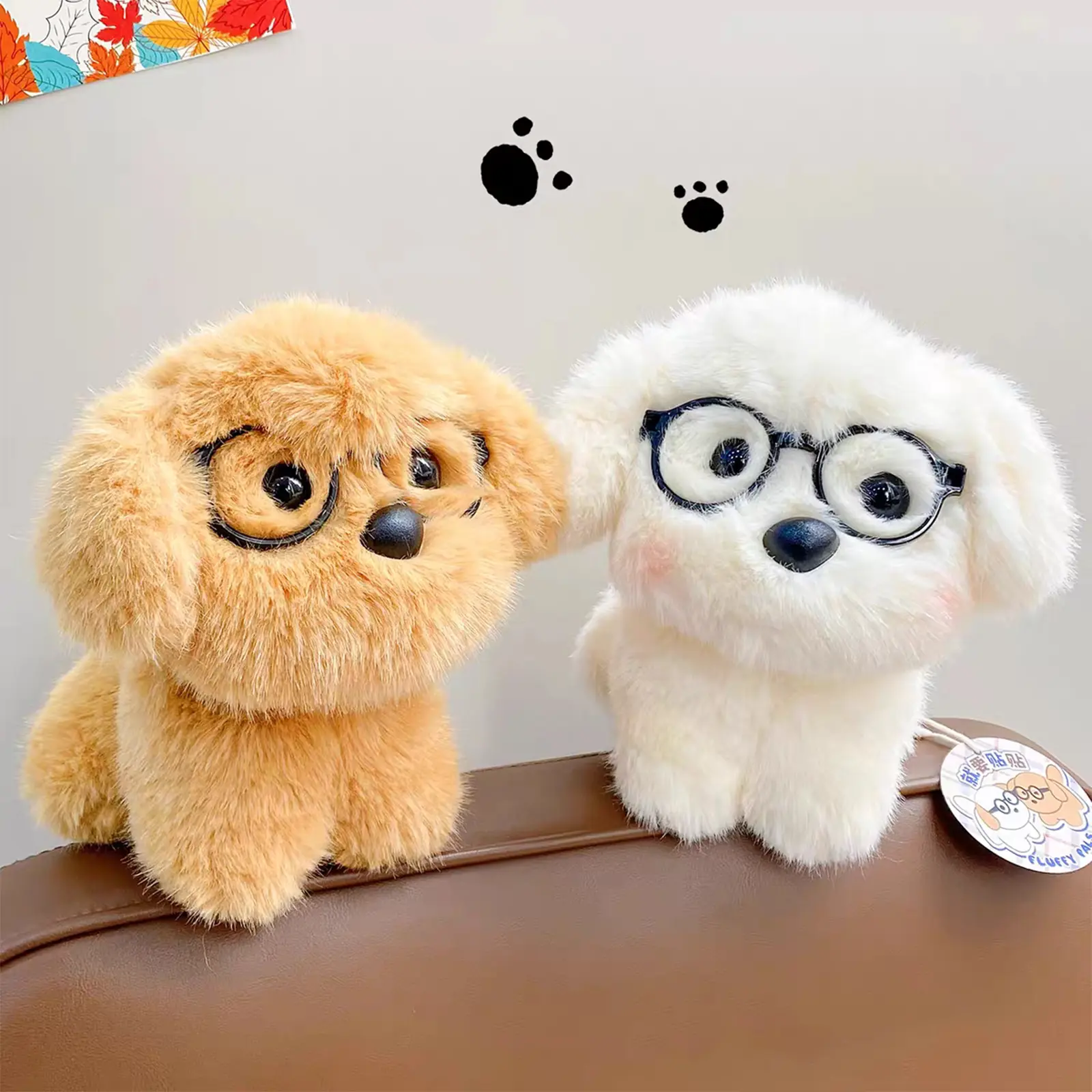 6" Magnetic Hugging Dog Plush Set, Cute Glasses Puppies That Stick Together, Soft Stuffed Animal Pair for Desk Decor, Backpack Charm & Kids Gift