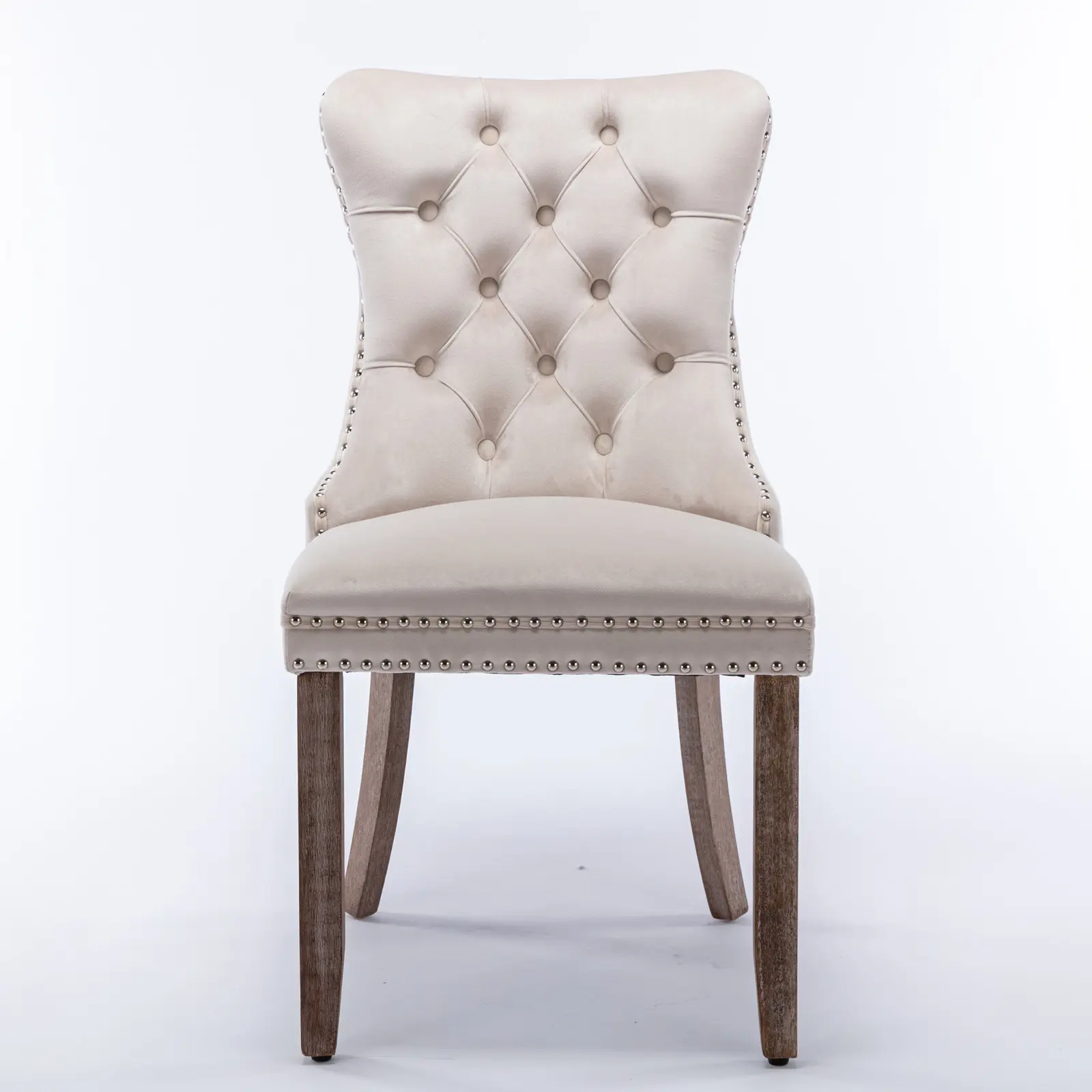 Wrapped in smooth velvet fabric and finished with elegant button tufting and nailhead trim, they instantly elevate your home with a modern yet timeless look. Whether you're hosting guests or enjoying daily meals, these chairs create a warm and stylish atmosphere.