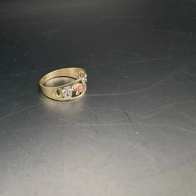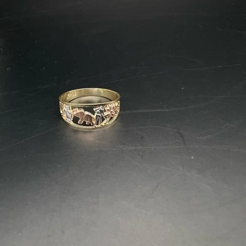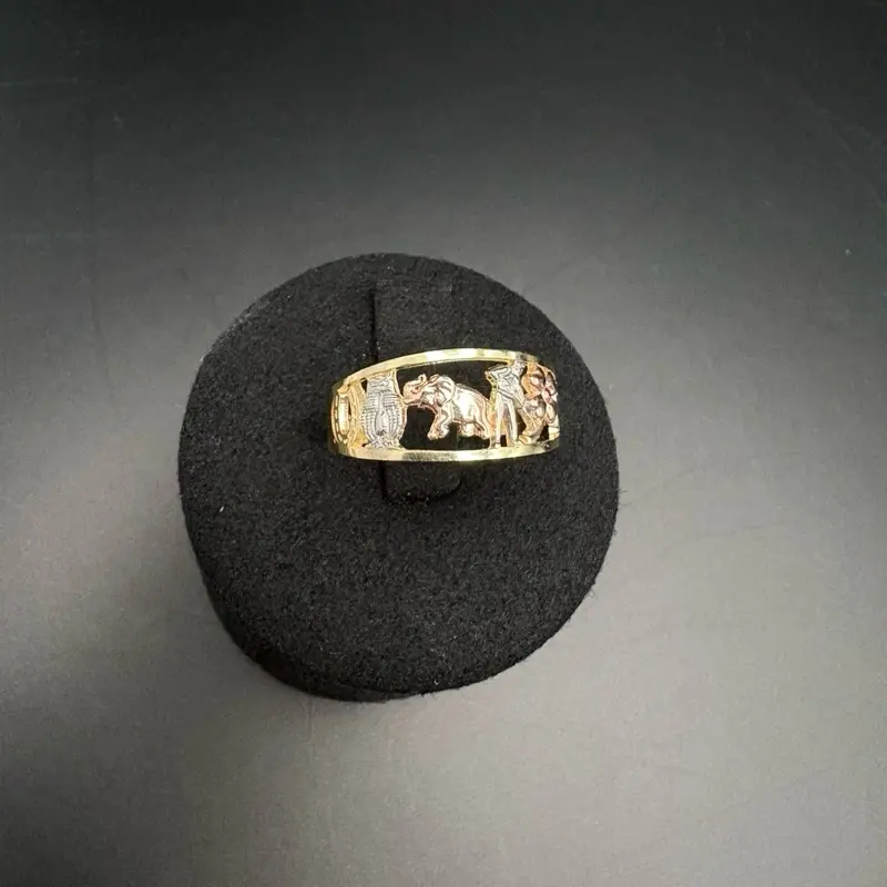 Lucky Gold Ring 10k Tree Tone with Intricate Elephant & Figure Design Size 7 Attract Good Energy Fortune Symbol of Luck Protection