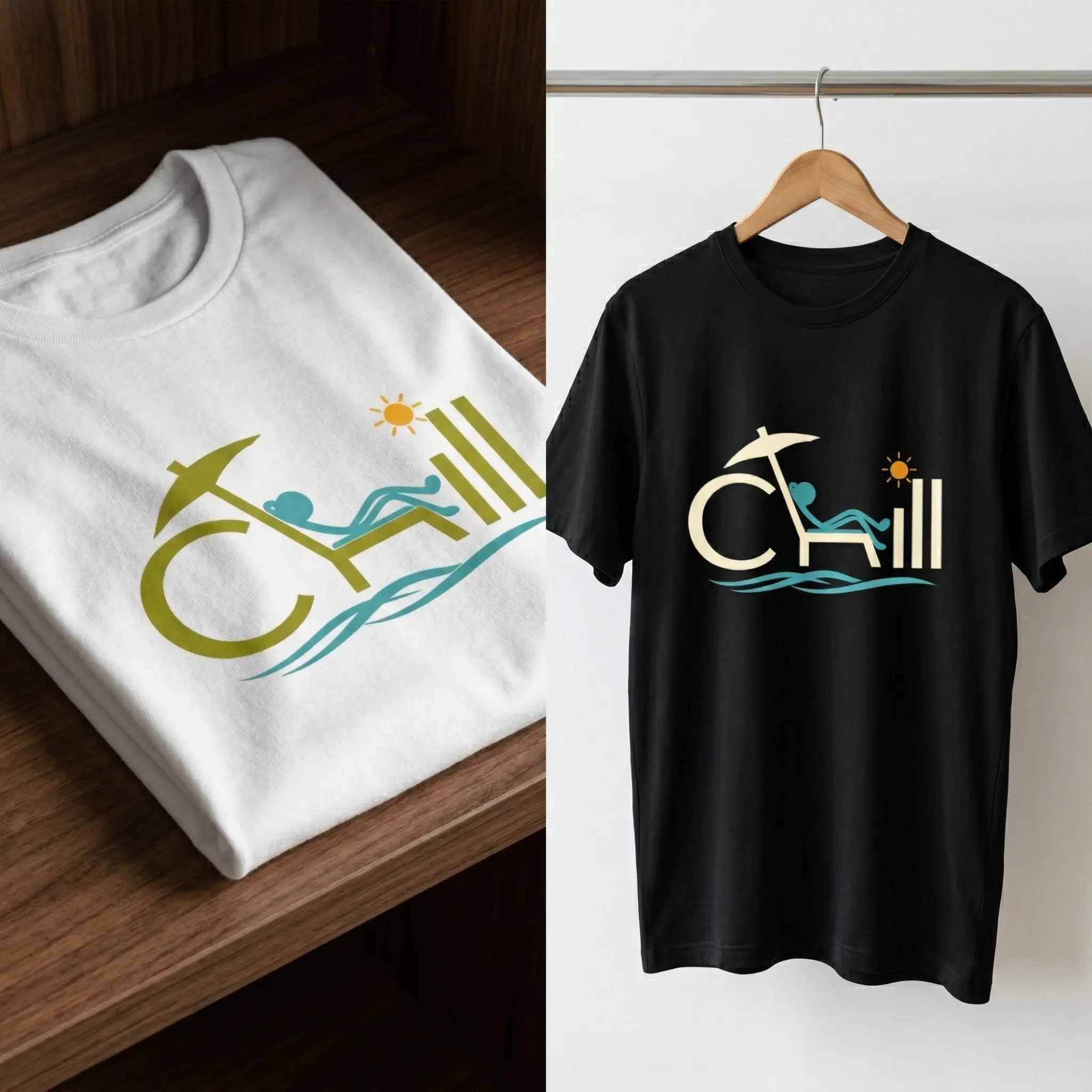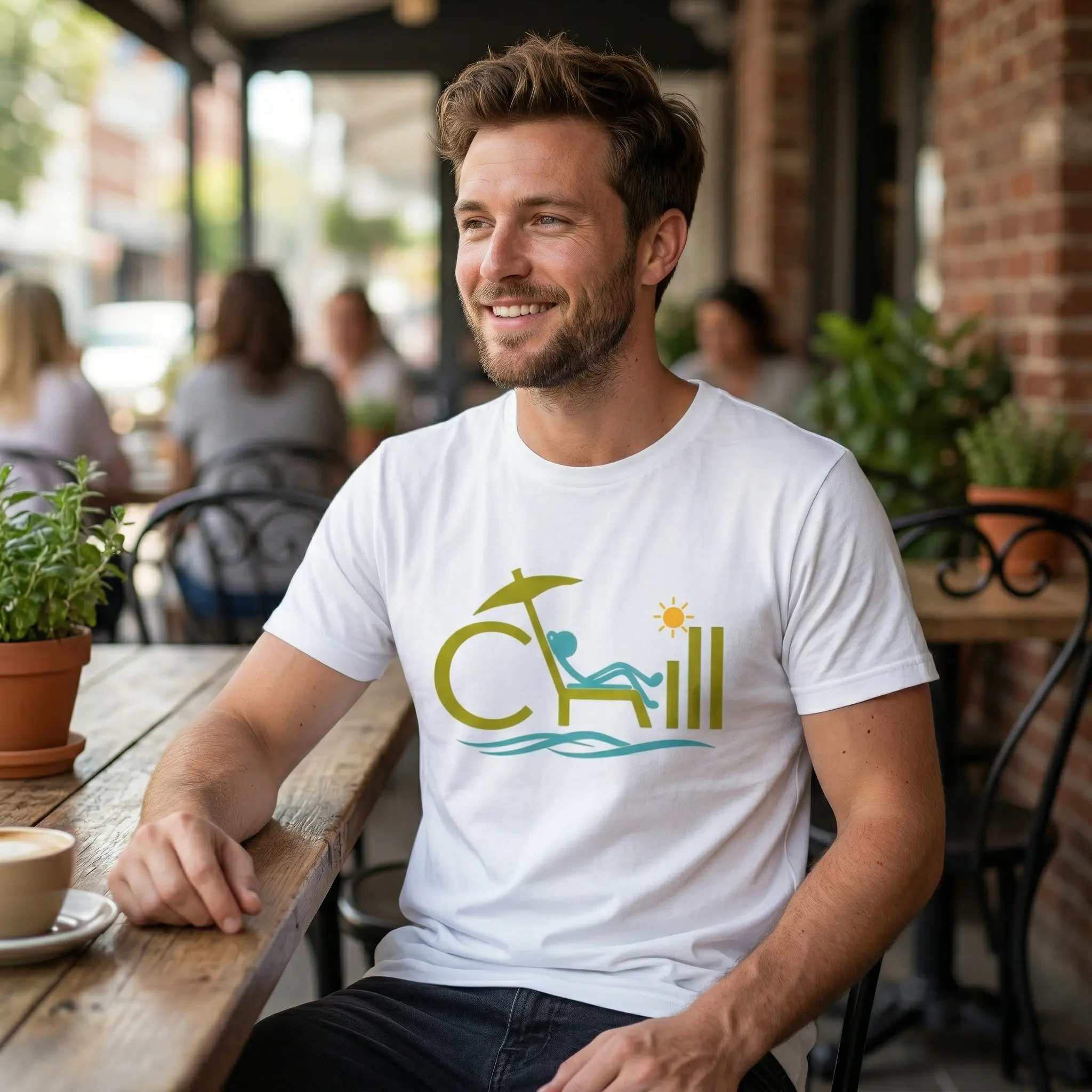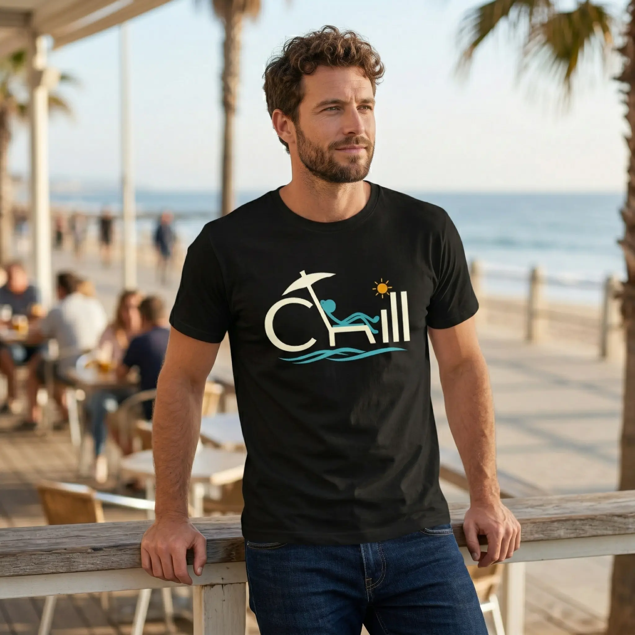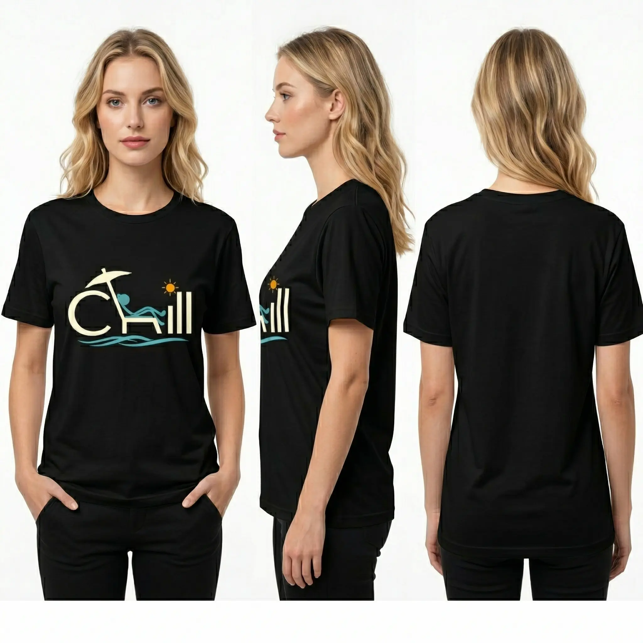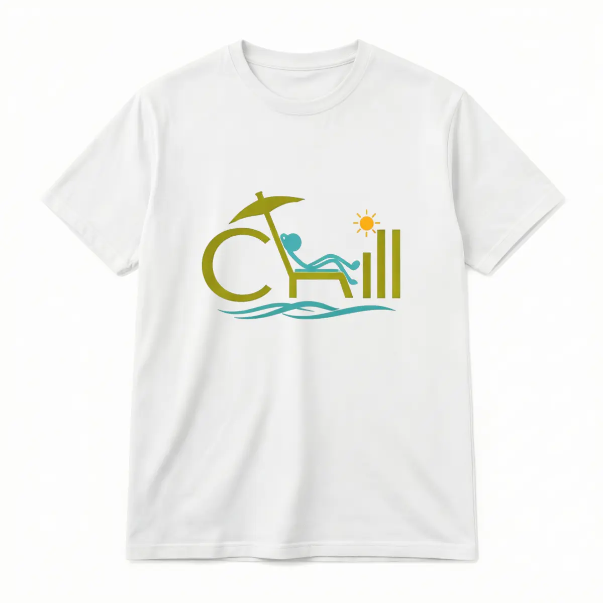 Chill Cotton Oversized T-Shirt Tee, Unisex Funny Meme T-Shirt with Beach Lounge Graphic Print for Summer Vacation Casual Streetwear Outfit