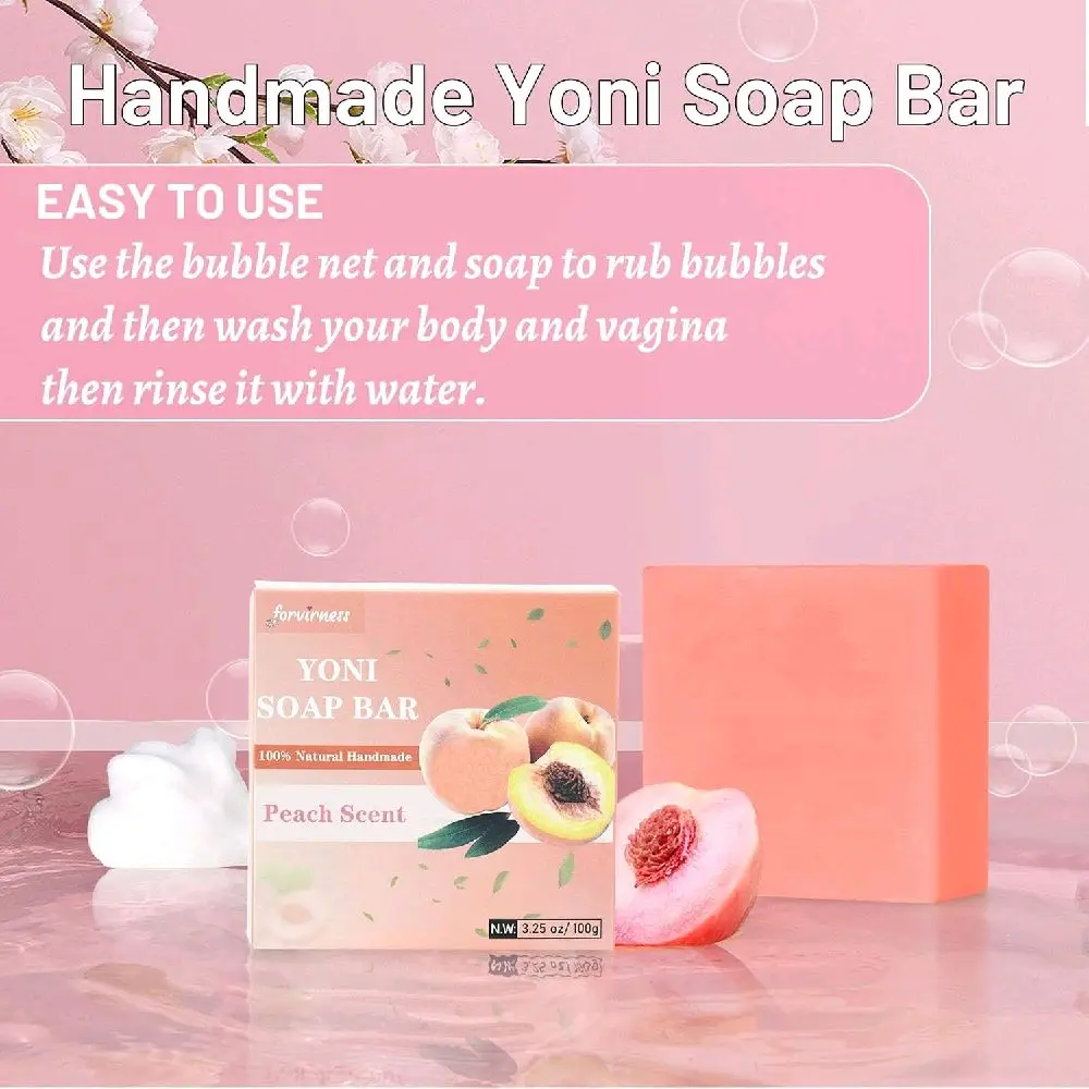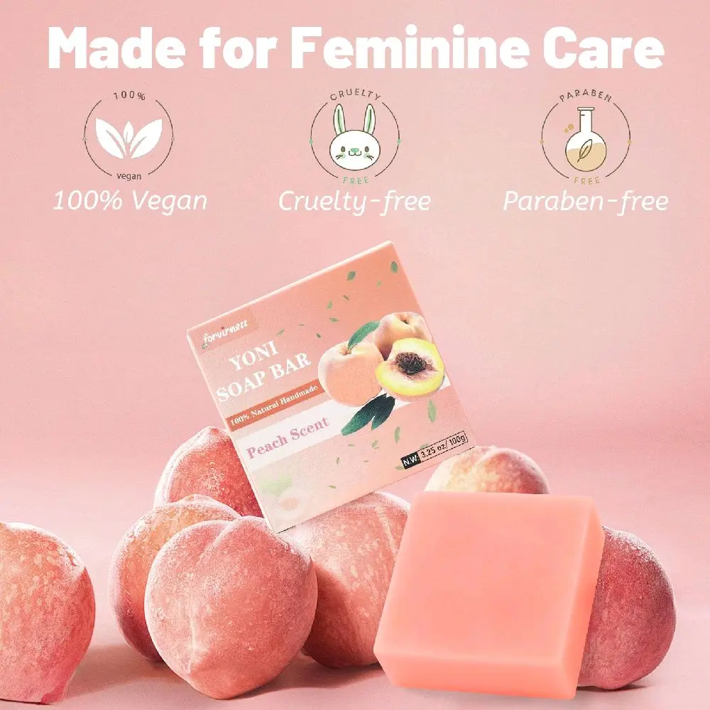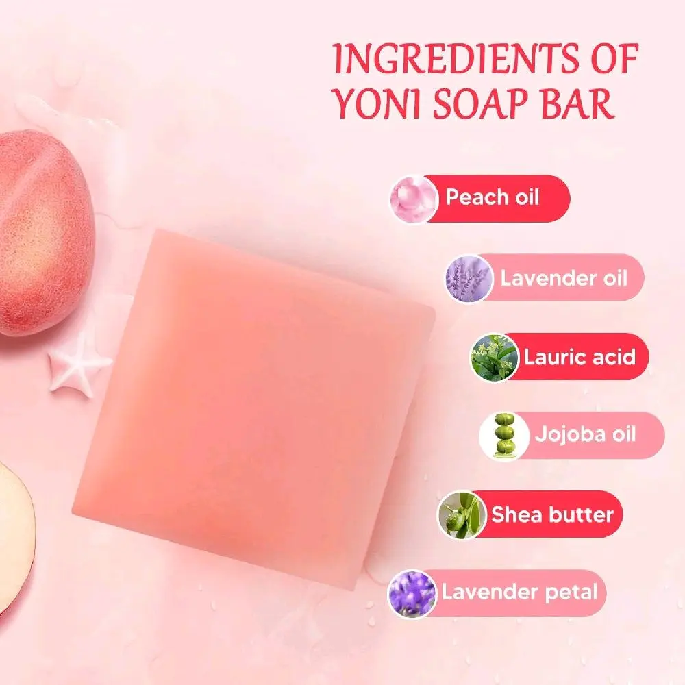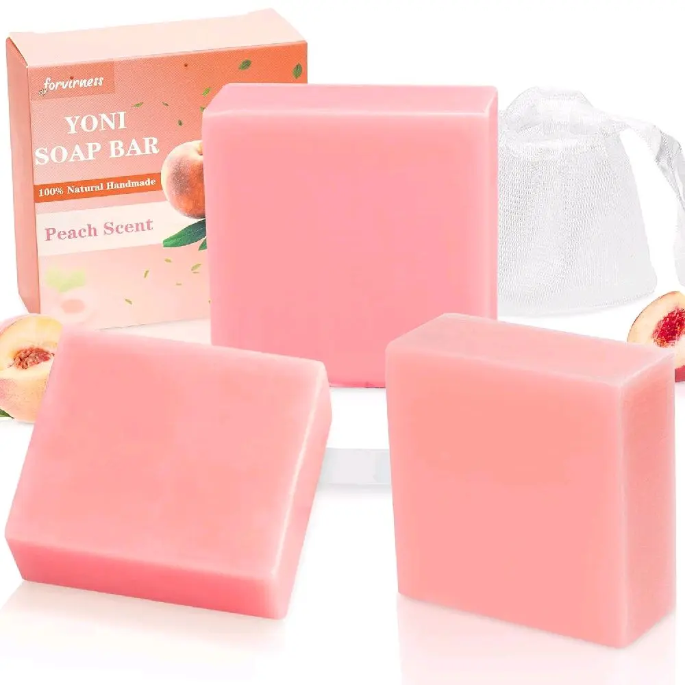 Yoni Soap Bar for Women PH Balance 3Pack Gentle V Cleansing Intimate Soap with Peach Juice Herbal Shea Butter & Jojoba Oil Moisturizers