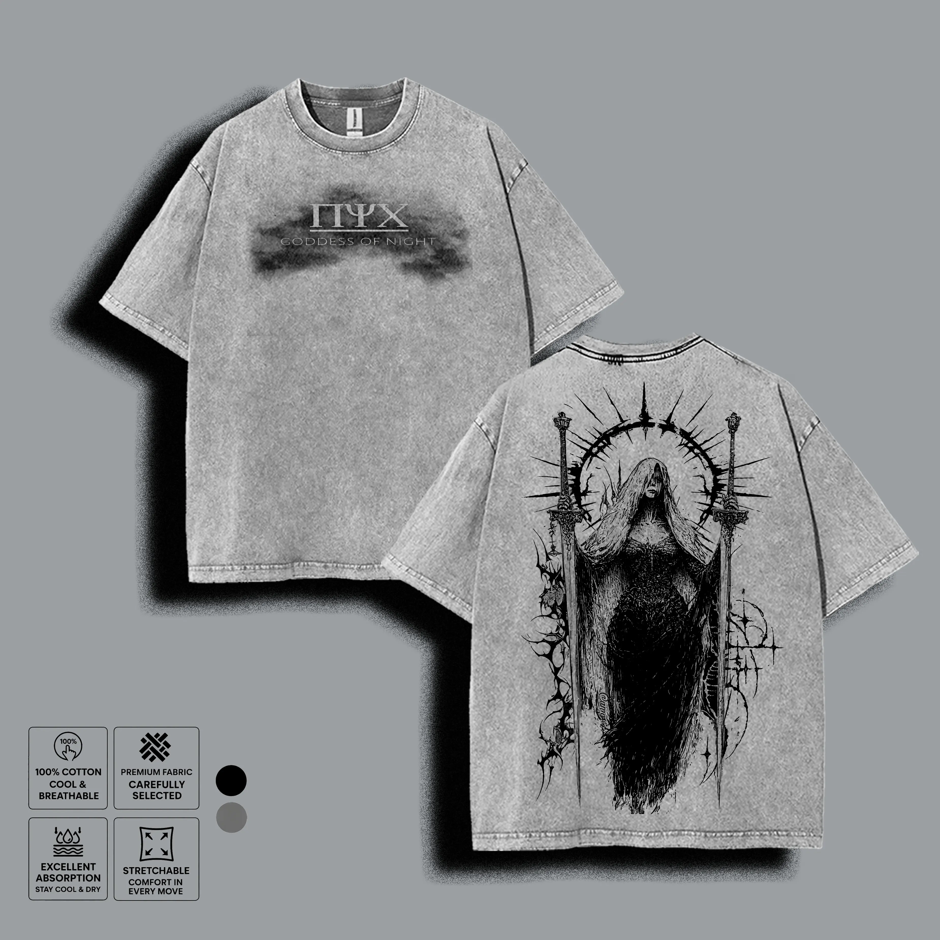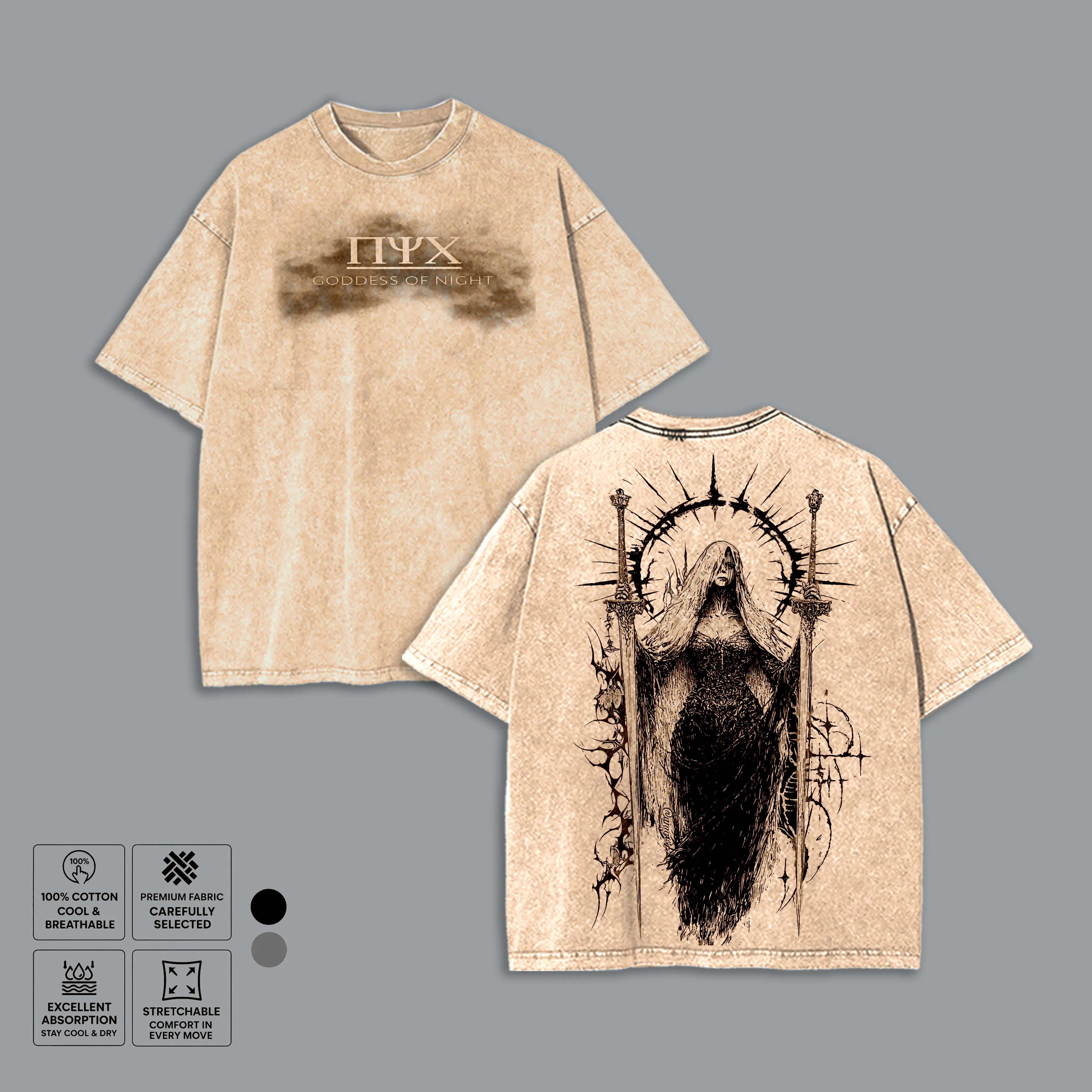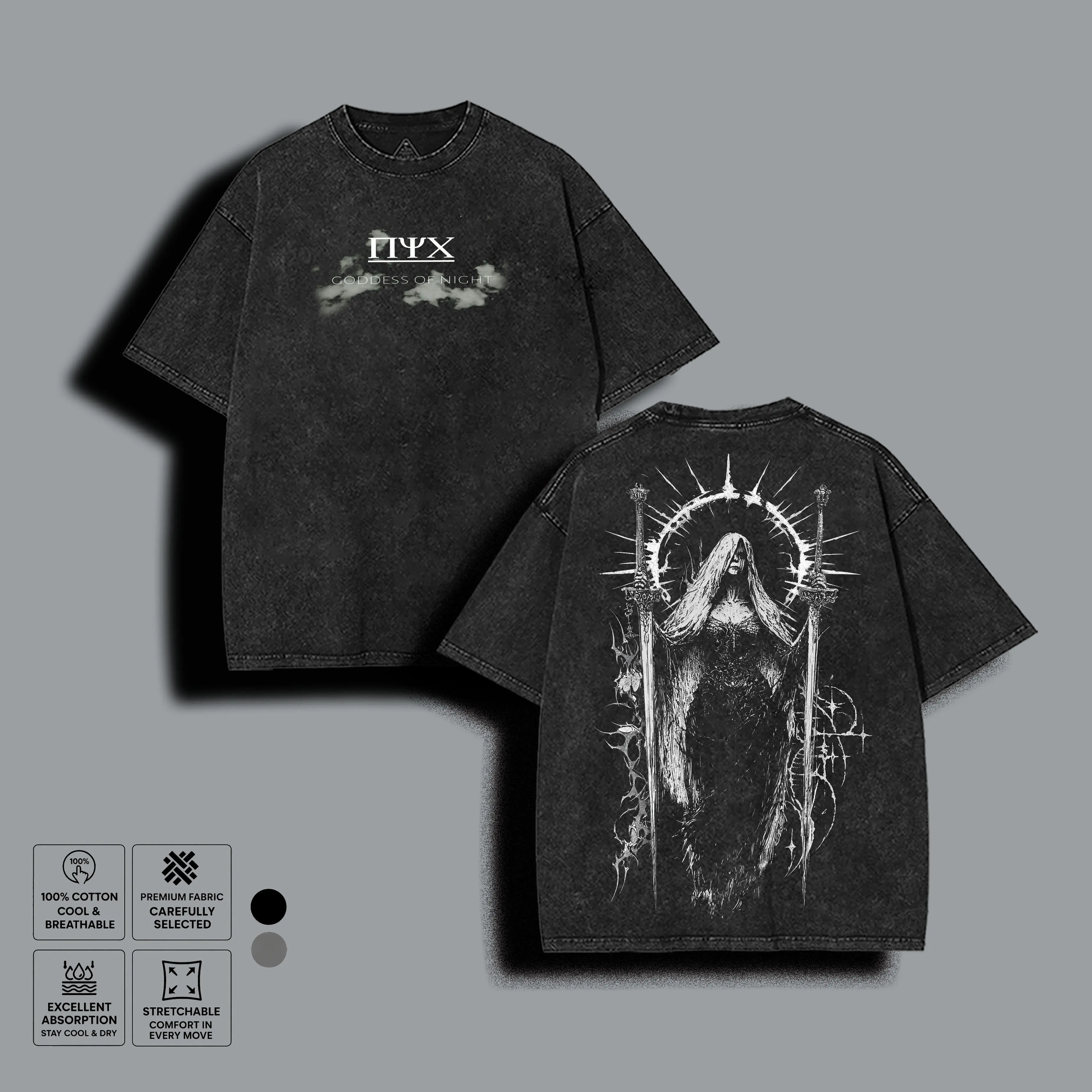 Dark Aesthetic Nyx Washed Shirt, Greek Goddess of Night Graphic Oversized Tee, Vintage Distressed Streetwear T-shirt, Unique Gift for Mythology Fans