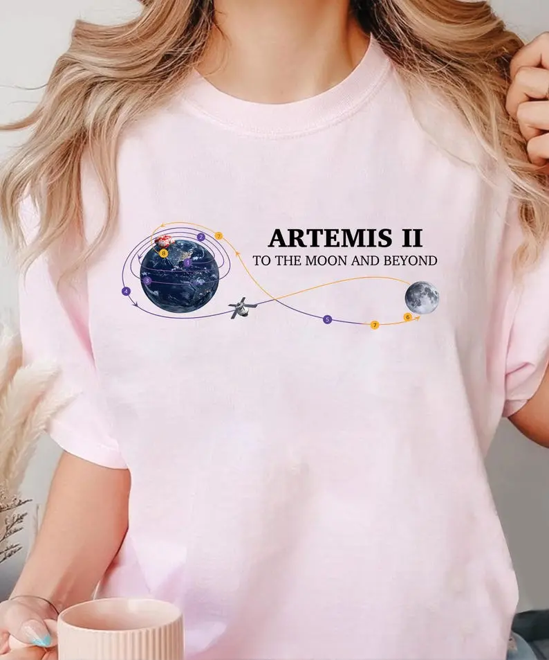 Artemis II To The Moon And Beyond T-Shirts, Artemis II 2026 Back to the Moon T-Shirt - Retro Manned Lunar Mission Shirt for Science Fans