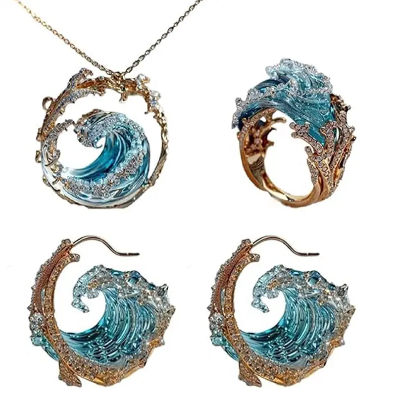 New adjustable ocean wave necklace/ring/earrings, summer ocean theme, gift for ladies and girls