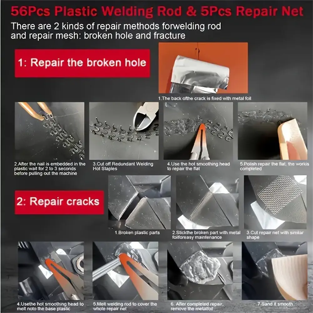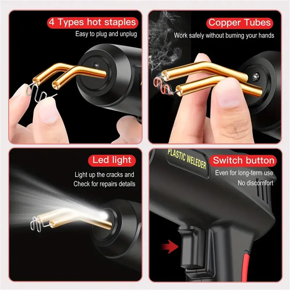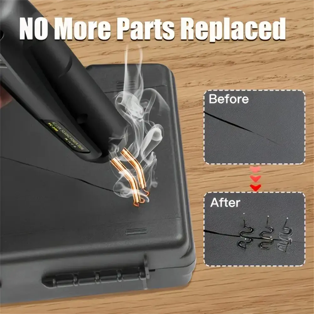 【Easy To Use】-The Plastic Welding Kit Has Anti Scald Protection Function,firm Welding,easy Operation And Portability. Just Press The Button To Heat And Weld The Staples Into The Plastic. The Head Light Illuminates When In Use.