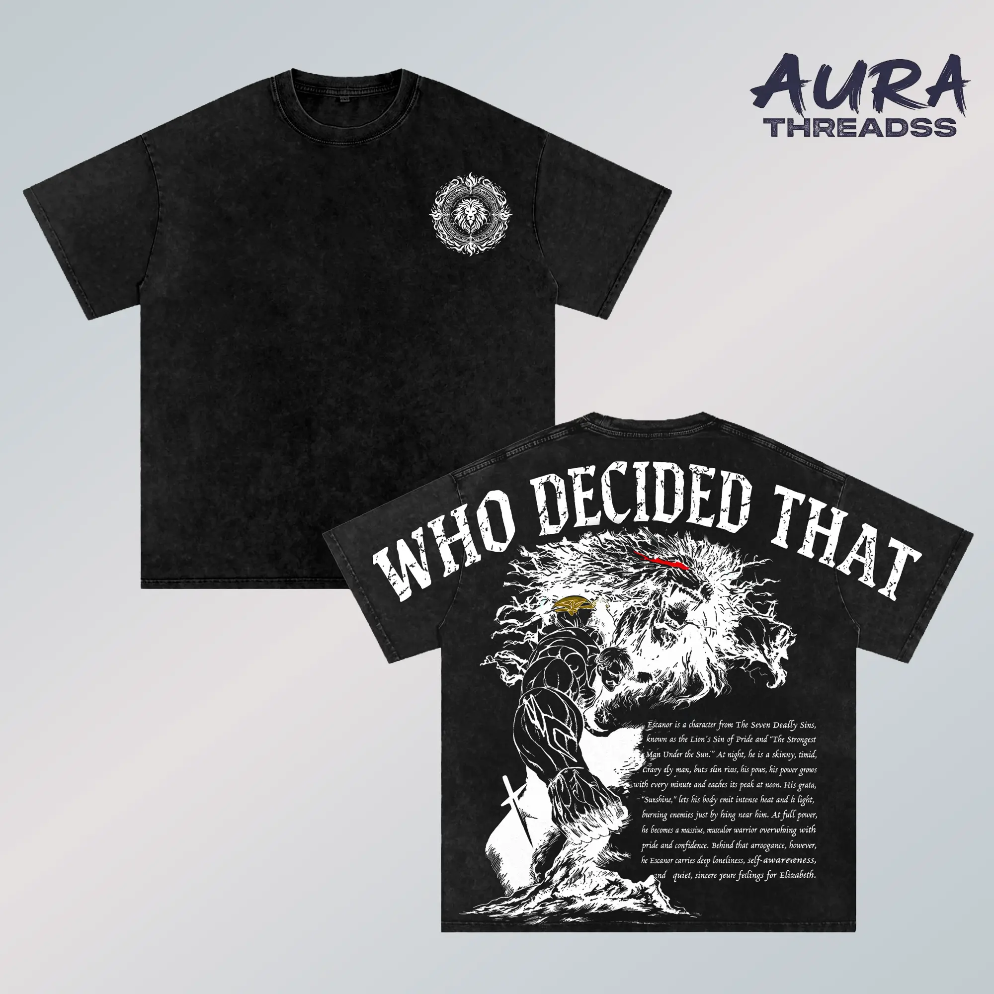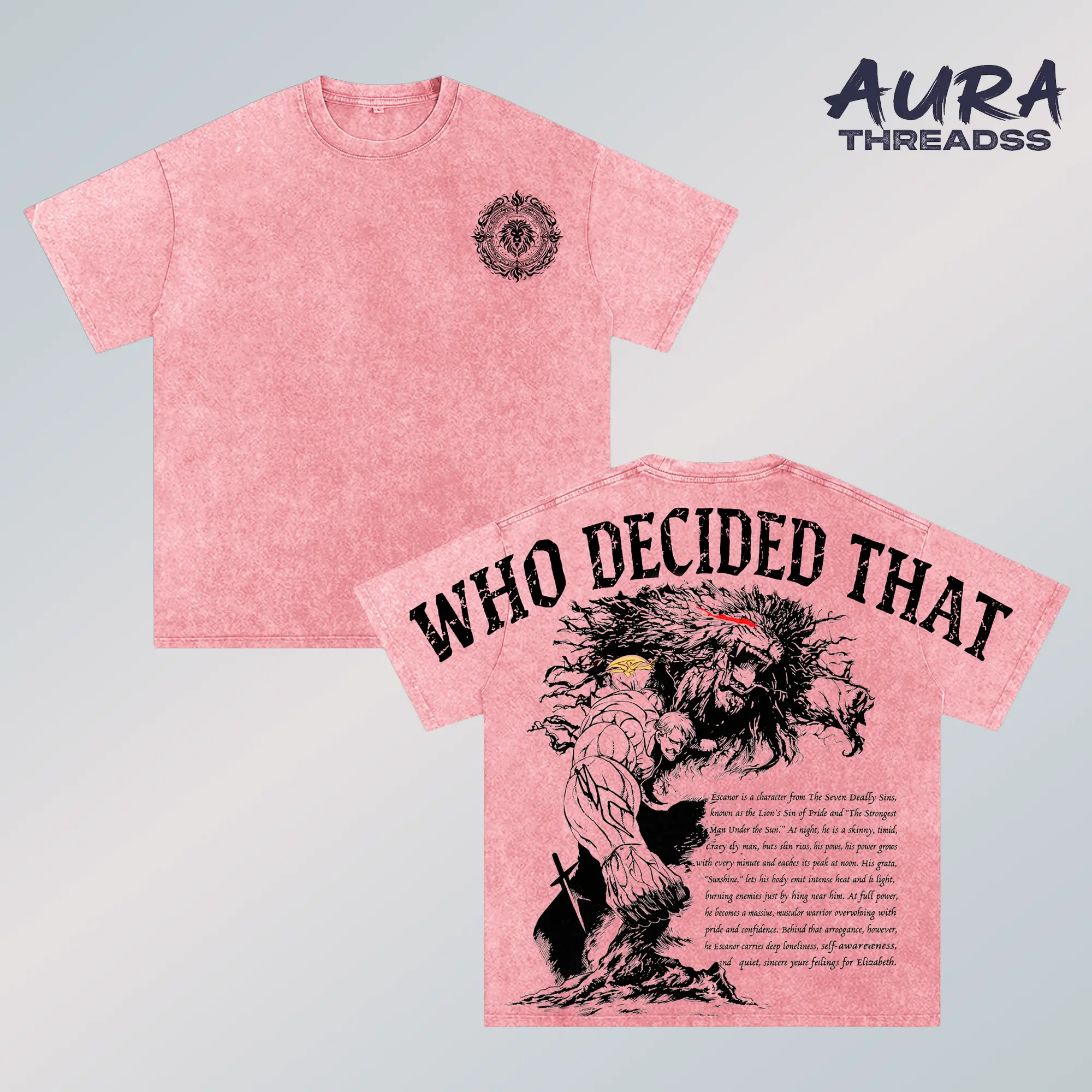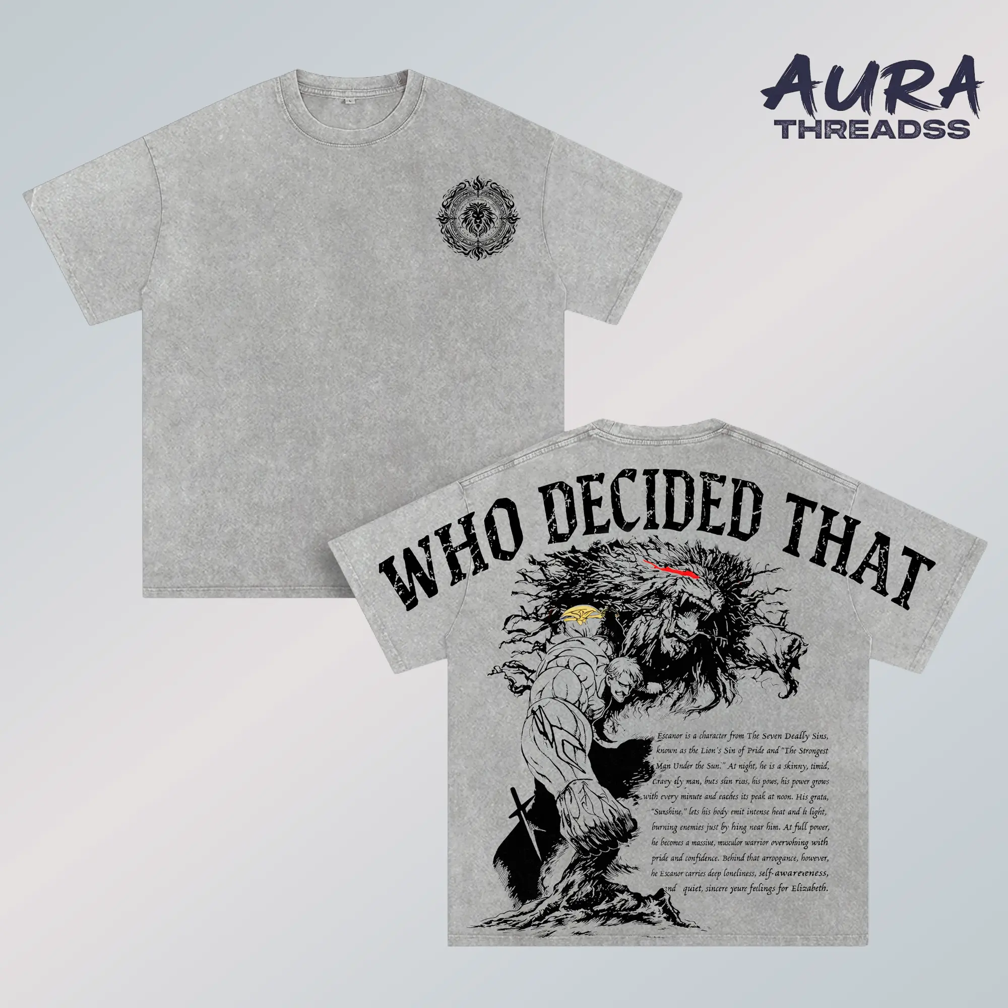 Escanor – The One Who Decided That Vintage Washed T-Shirt, Lion Sin Pride Anime Graphic Tee, Sun Power Aesthetic Oversized Heavyweight Cotton Streetwear For Fans