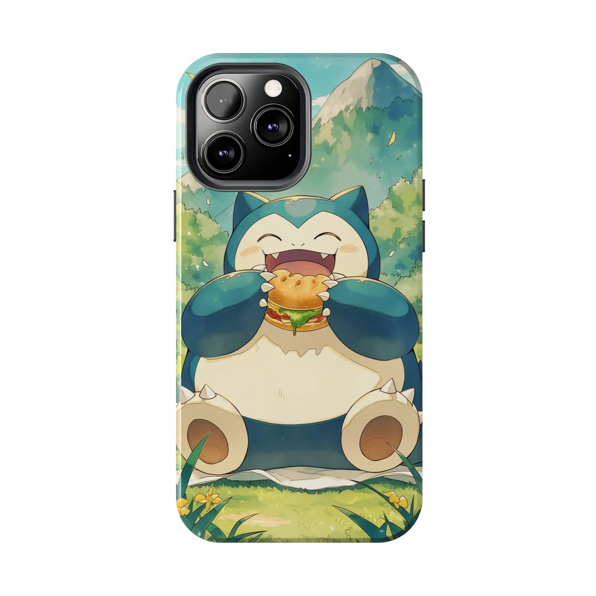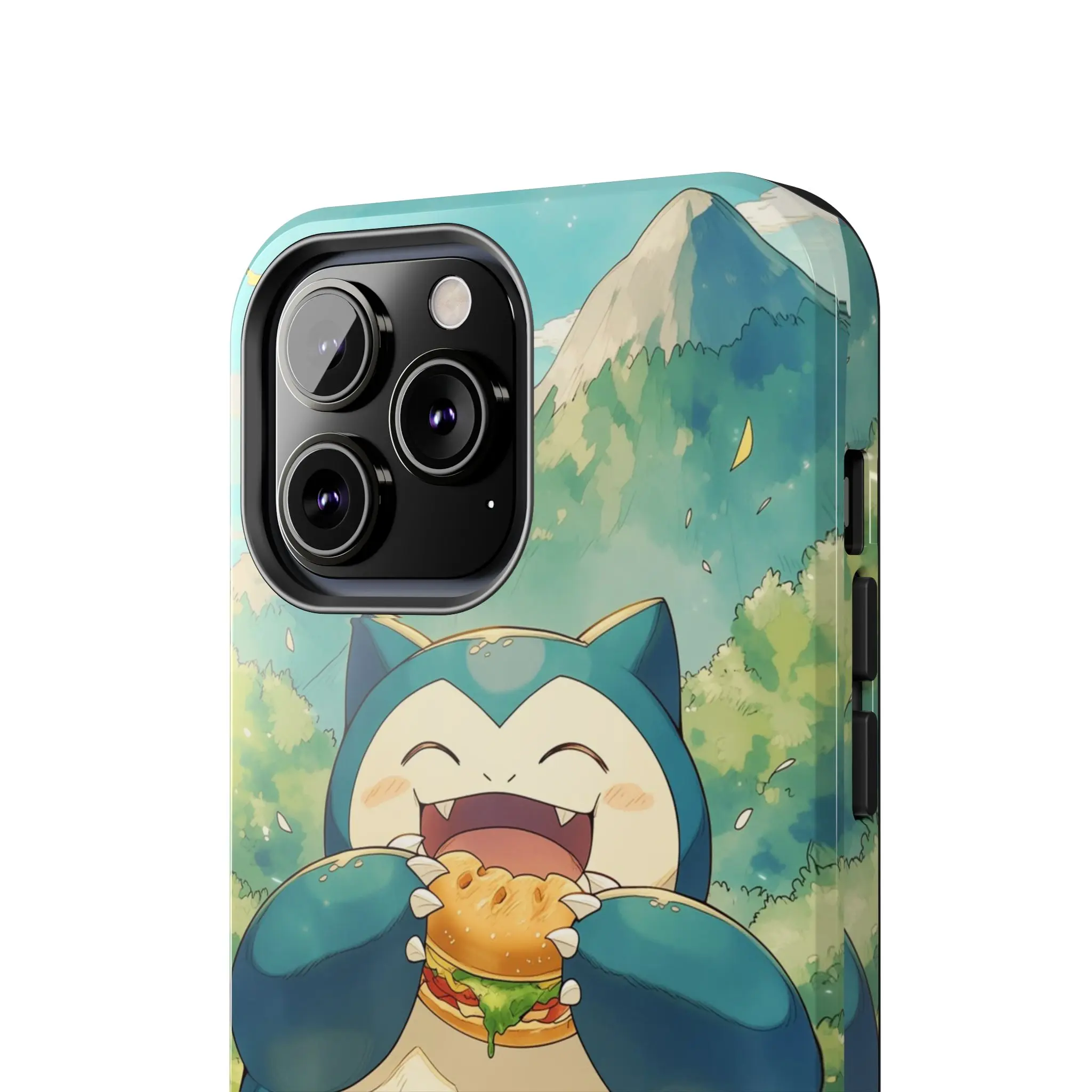Description: Indulge your phone's inner foodie with this charming scenic case. Featuring Snorlax mid-bite of a gigantic, delicious hamburger, nestled on a soft picnic blanket, this design captures a delightful moment of pure, joyful indulgence. Against a backdrop of sun-kissed mountains and a lush meadow, this case is a playful tribute to a love of great food and beautiful vistas. Perfectly blending pop-culture whimsy with a heartwarming artistic feel, it’s designed for those who know that sometimes the best adventure is a really great meal in nature.