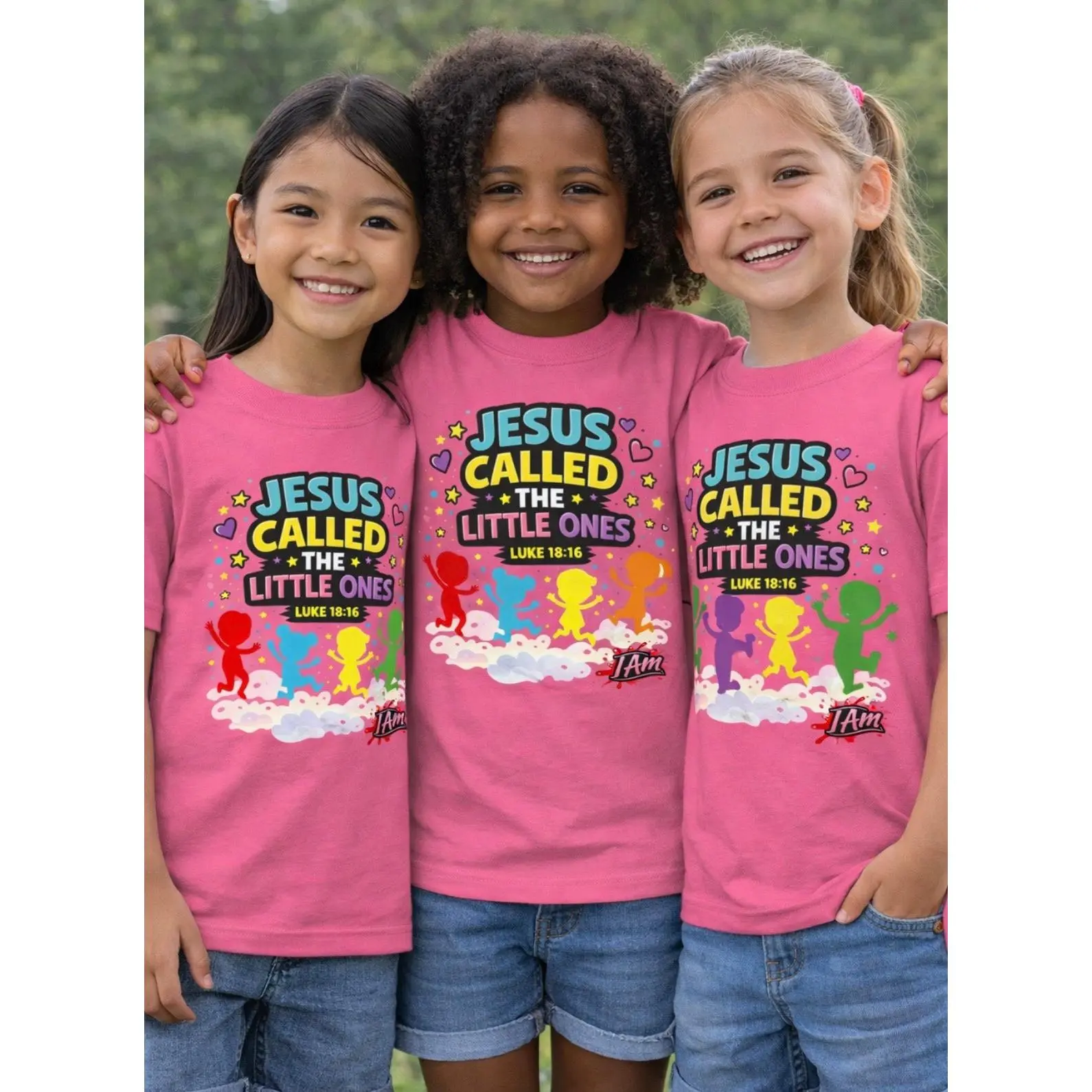 Inspired by Luke 18:16, this piece speaks life, identity, and love over every child who wears it. Designed with bold colors and joyful movement, it reflects the truth that children are seen, valued, and called by Jesus.