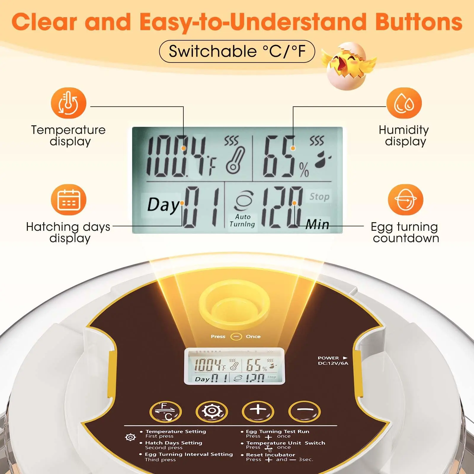 Smart 12 Capacity Automatic Control Device with Turning System, Precise Temperature Control, Auto Water Refill & LED Light, Compact Design