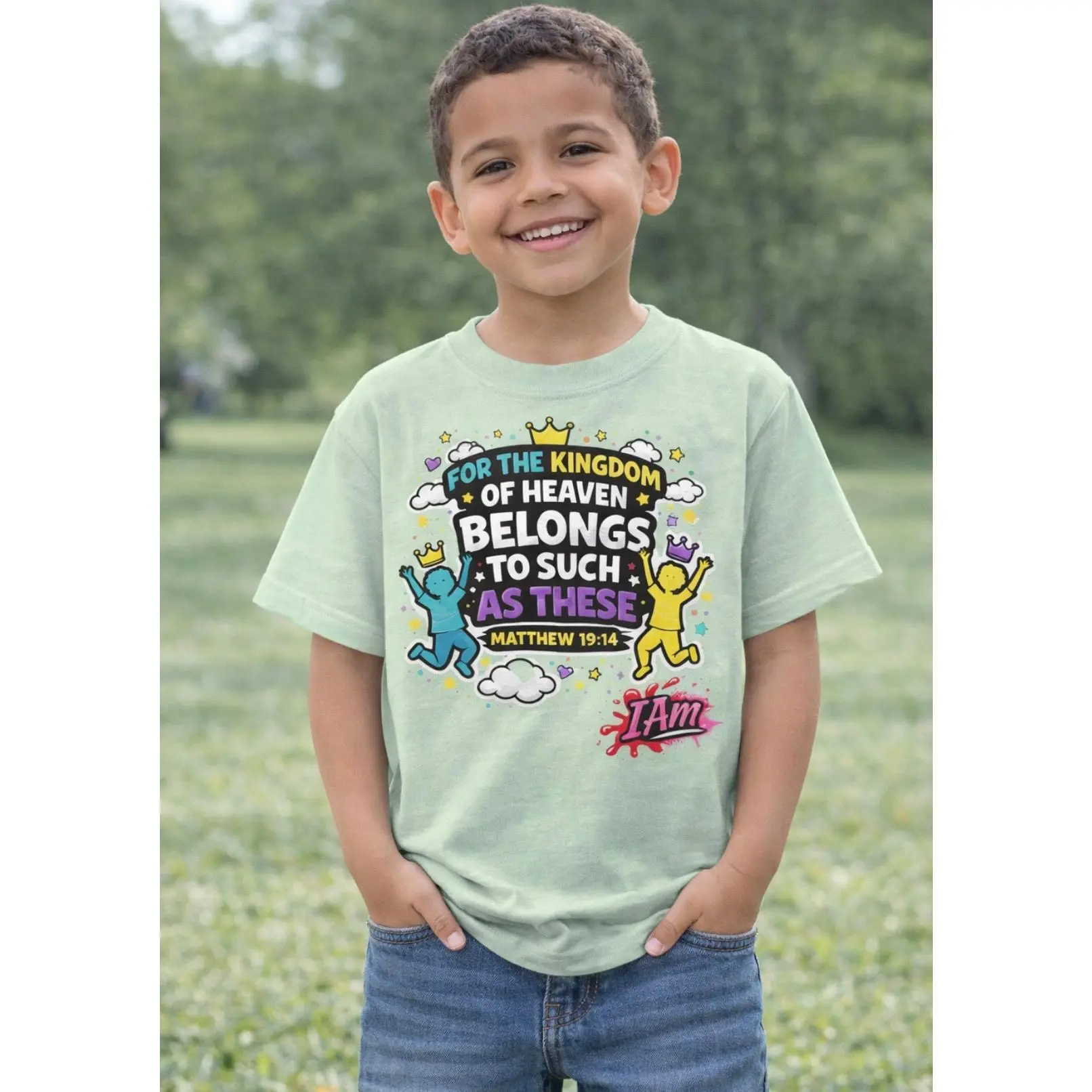 Soft, joyful, and full of truth — this design is a beautiful reminder of how much children mean in God’s kingdom. Inspired by Matthew 19:14, this tee celebrates innocence, faith, and the powerful place children hold in His heart.