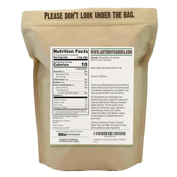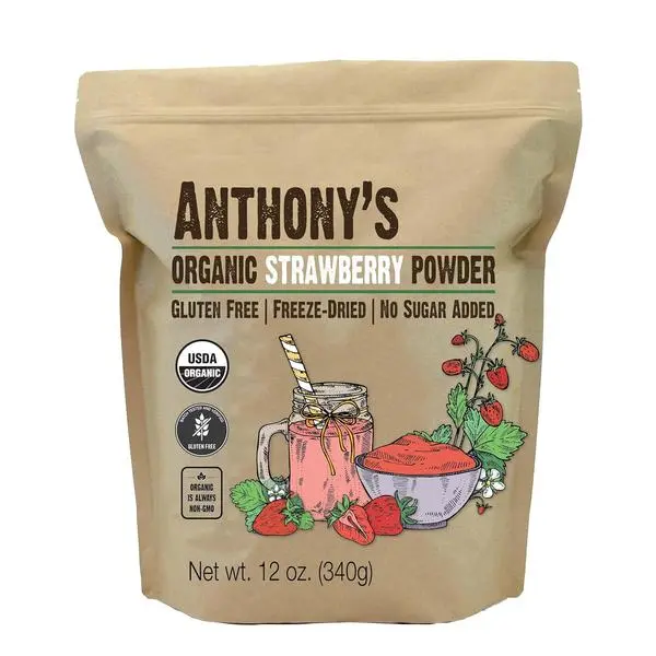 Anthony's Organic Strawberry Powder, 12 oz, Freeze Dried, Gluten Free, No Sugar Added, Non GMO