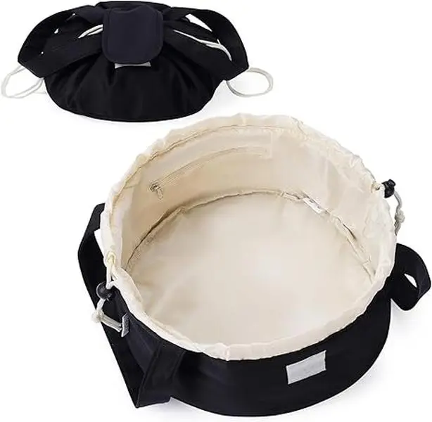 ·Convenient Design. Front flap velcro closure and double drawstrings make it easy to close quickly and firmly. Barrel-like construction protect items from sliding out when packing. 2 Sturdy handles are convenient to carry