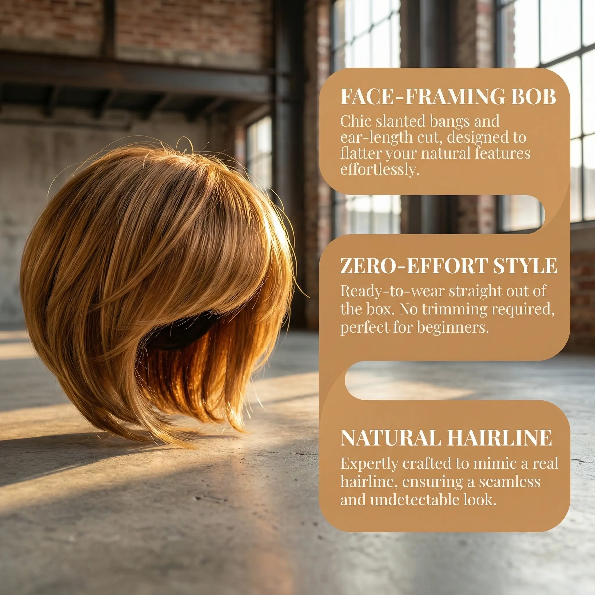Crafted with premium human hair, this wig delivers that natural, silky-smooth look and feel you can only get with real hair. The pre-styled layered cut with face-framing bangs is ready to wear right out of the box – no cutting, no styling, just pop it on and go!