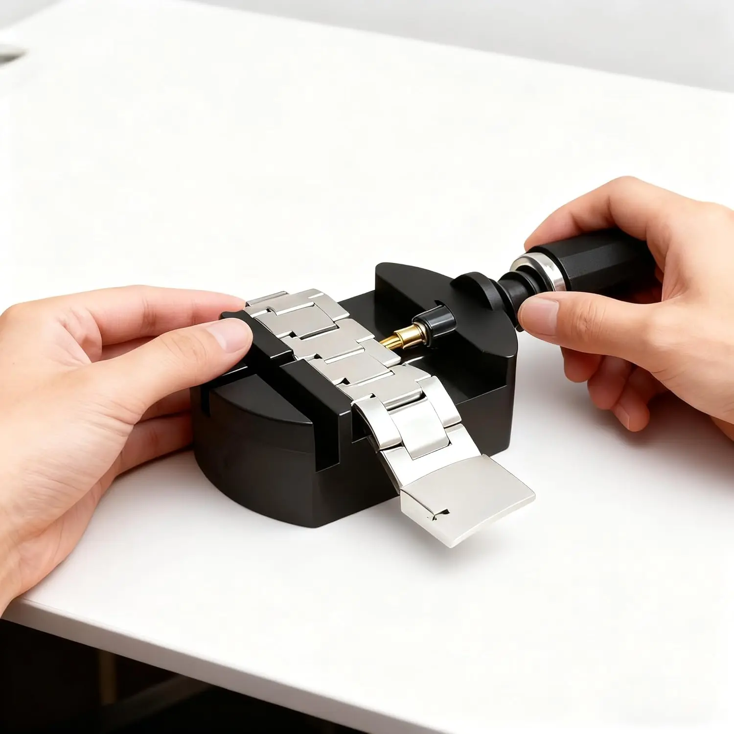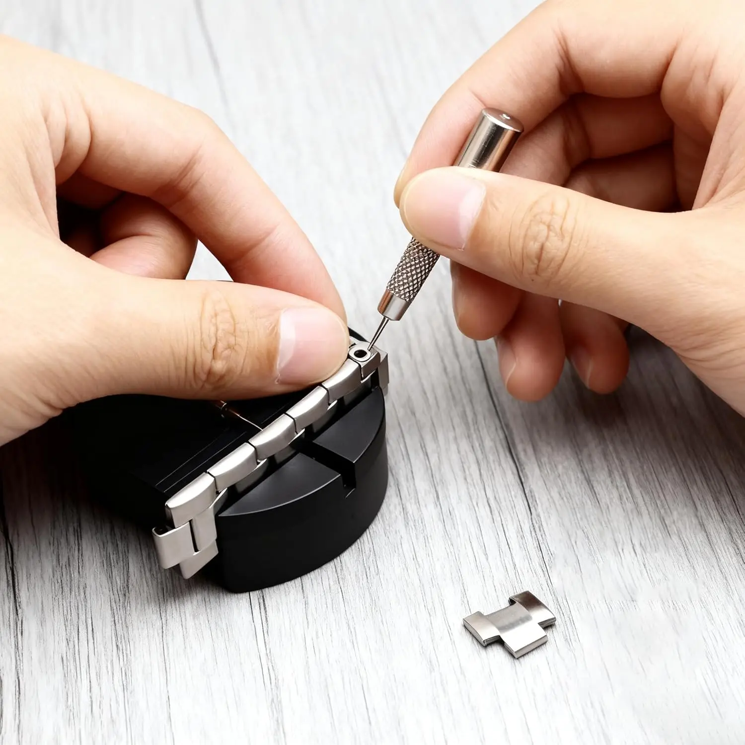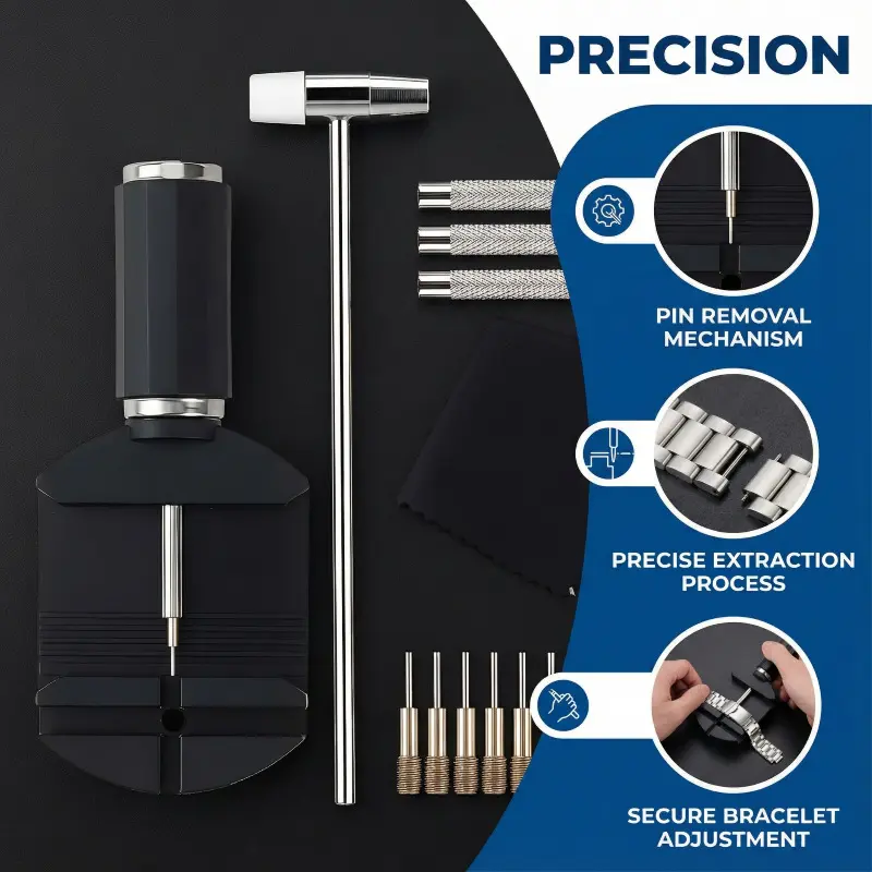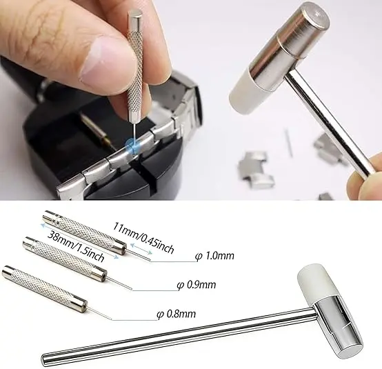 ·Two-Way Watch Band Adjustment Tool: The watch bracelet link removal tool is your go-to for most steel bands. Use the mini hammer and a set of 3 varying-sized punches to adjust the bracelet size of wider or tighter bracelets