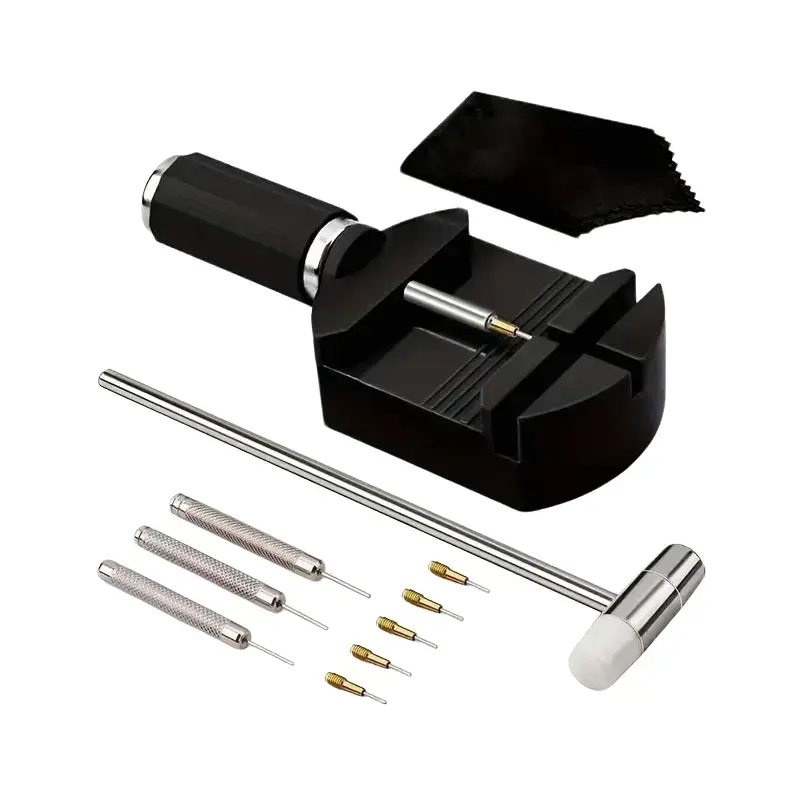 ·Multifunctional Watch Resizing Kit: BYNIIUR watch band link removal kit includes 1 watch band tool kit, 5 spare pins, 1 hammer, 3 pin punches, and 1 cleaning cloth, helping you adjust the length of most watch bands