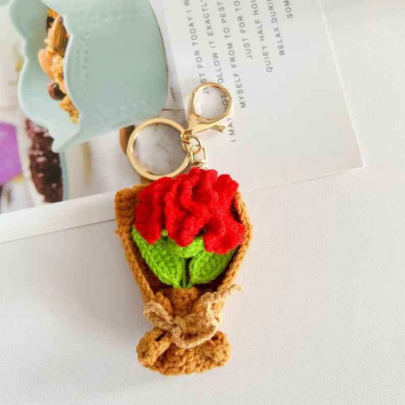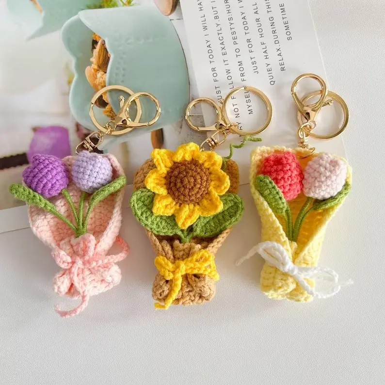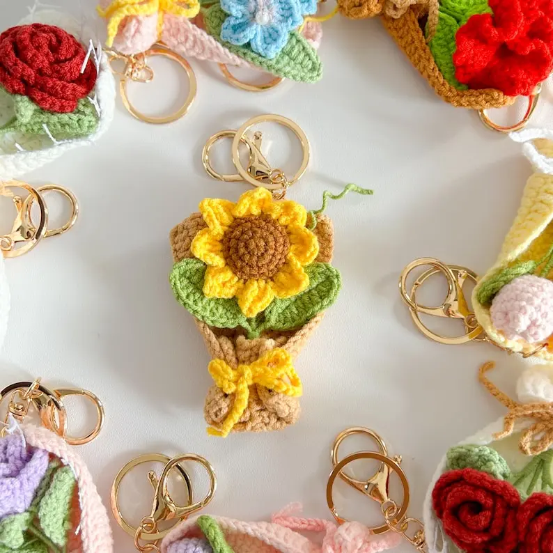 🌼 Handmade Crochet Flower Keychain – Sunflower, Tulip, or Rose Keyring