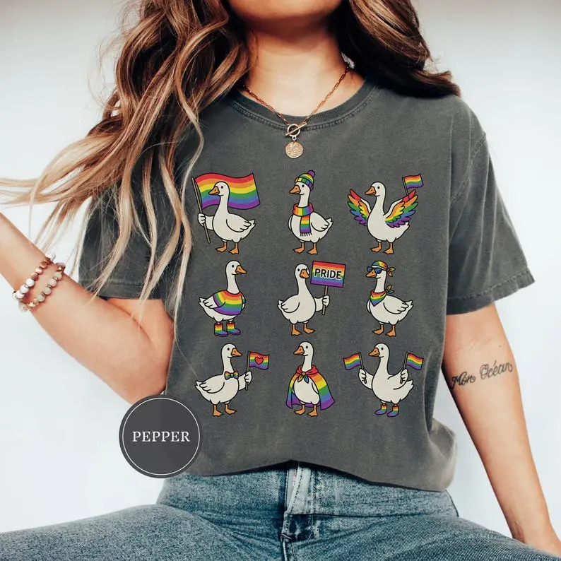 Comfort Colors Pride Geese T-Shirt, Funny LGBTQ Goose Shirts, Gay Pride Animal Shirt, Pride Month Graphic Tee, Queer Pride Shirt, Cute Pride Gift for Her