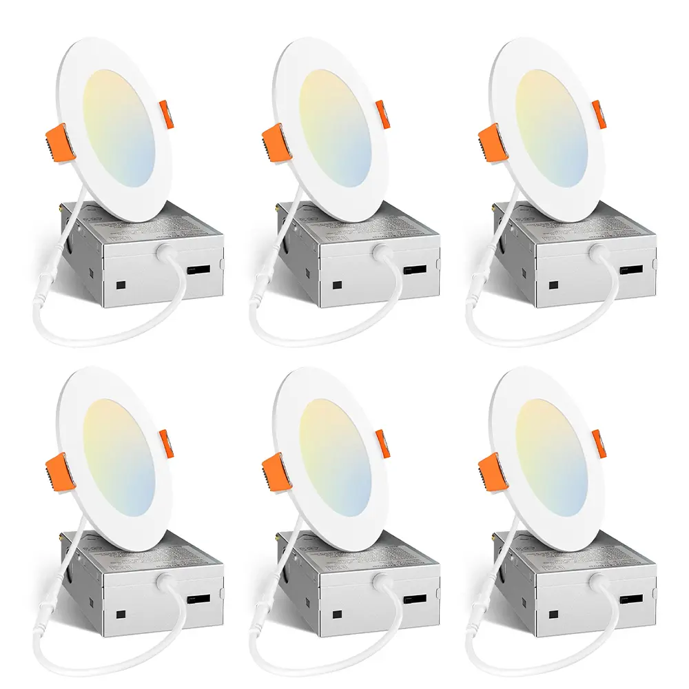 DAYBETTER 6 Inch 5CCT LED Recessed Ceiling Light with Night Light, 2700K/3000K/3500K/4000K/5000K Selectable Ultra-Thin Lighting, 1050LM, Dimmable Canless Wafer Downlight ETL&FCC
