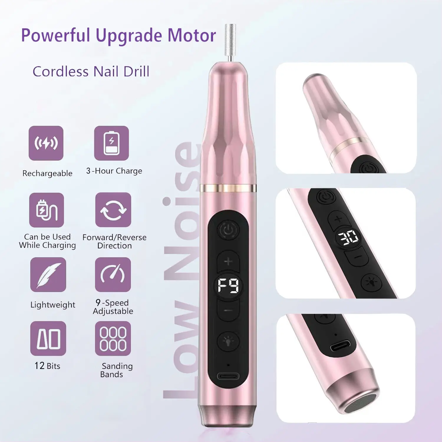 HengYuaoler Professional 9-Speed Cordless Nail Drill Kit