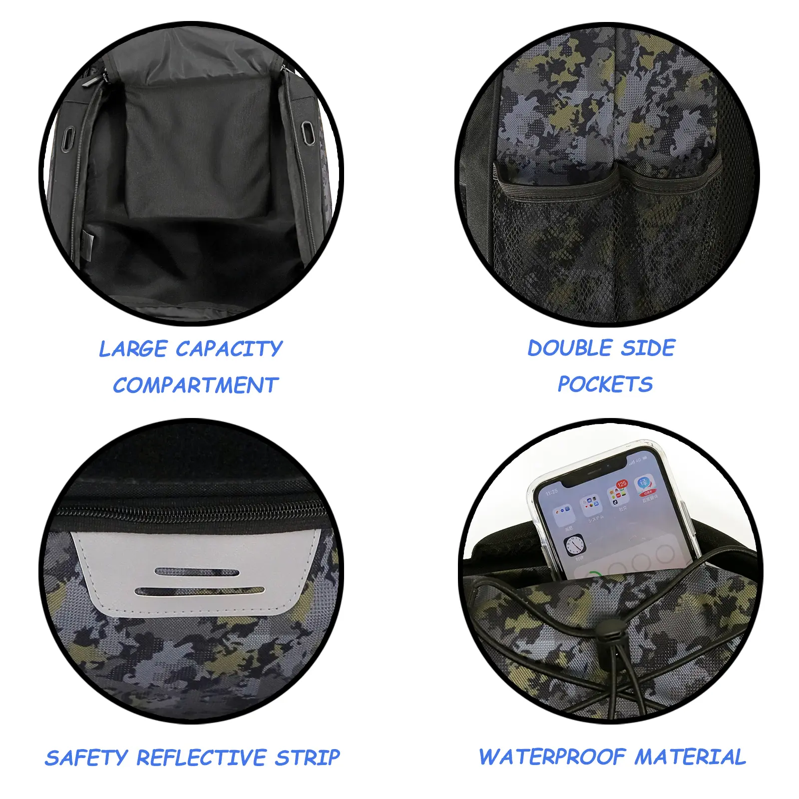 Features an easy-carry handle and adjustable shoulder straps for comfort. The breathable, padded back ensures a comfortable carry. The integrated fence hook and front bungee cord add convenience. Dimensions: W: 13.4", D: 7.6", H: 18.5". Ideal for youth and adults.