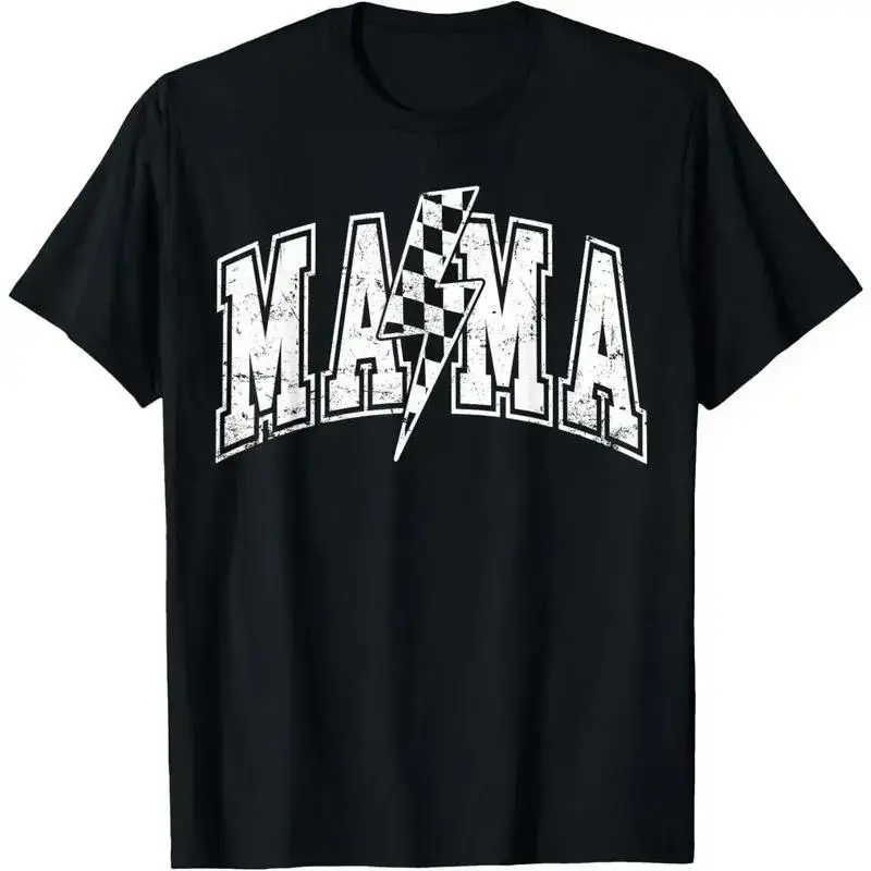 Mama Lightning Bolt Checkered Varsity Mom Women Mother's Day T-Shirt