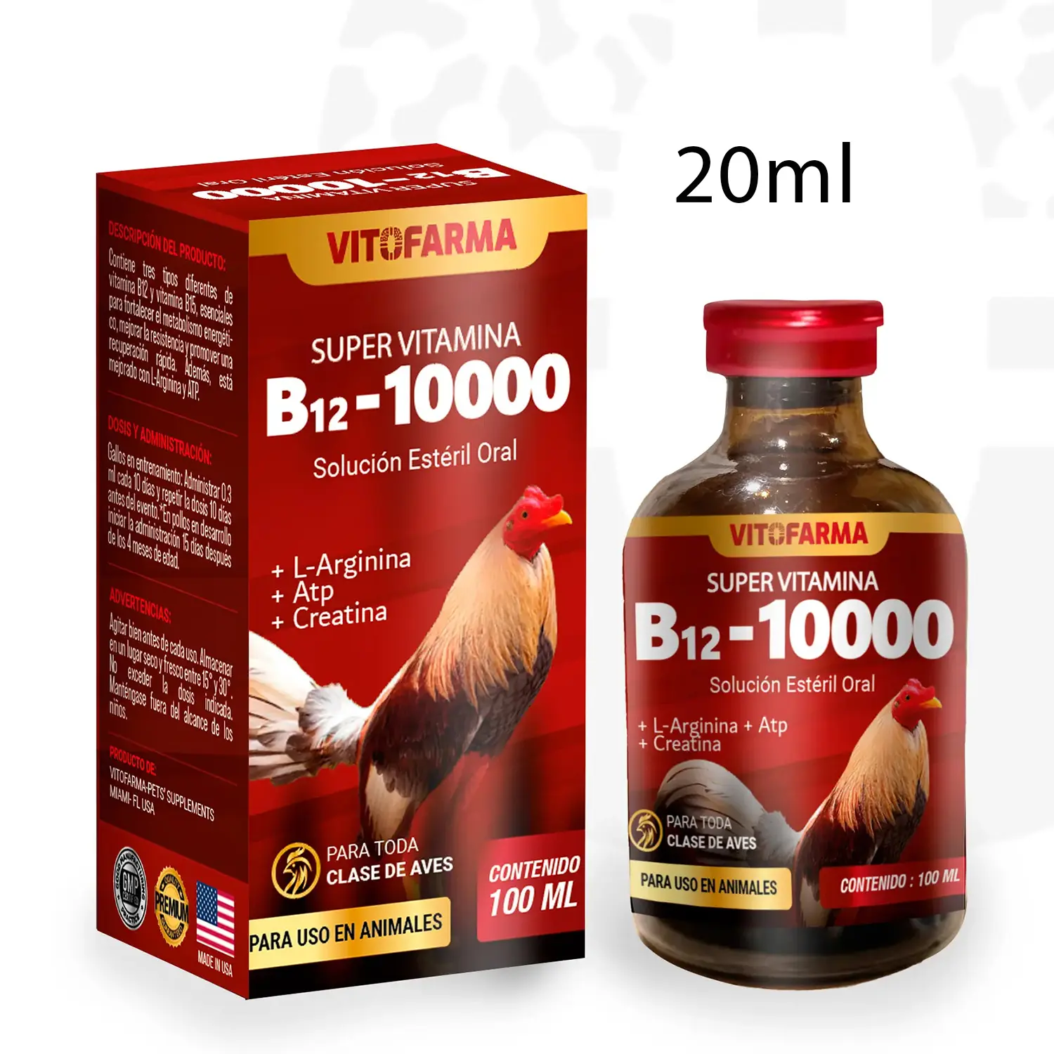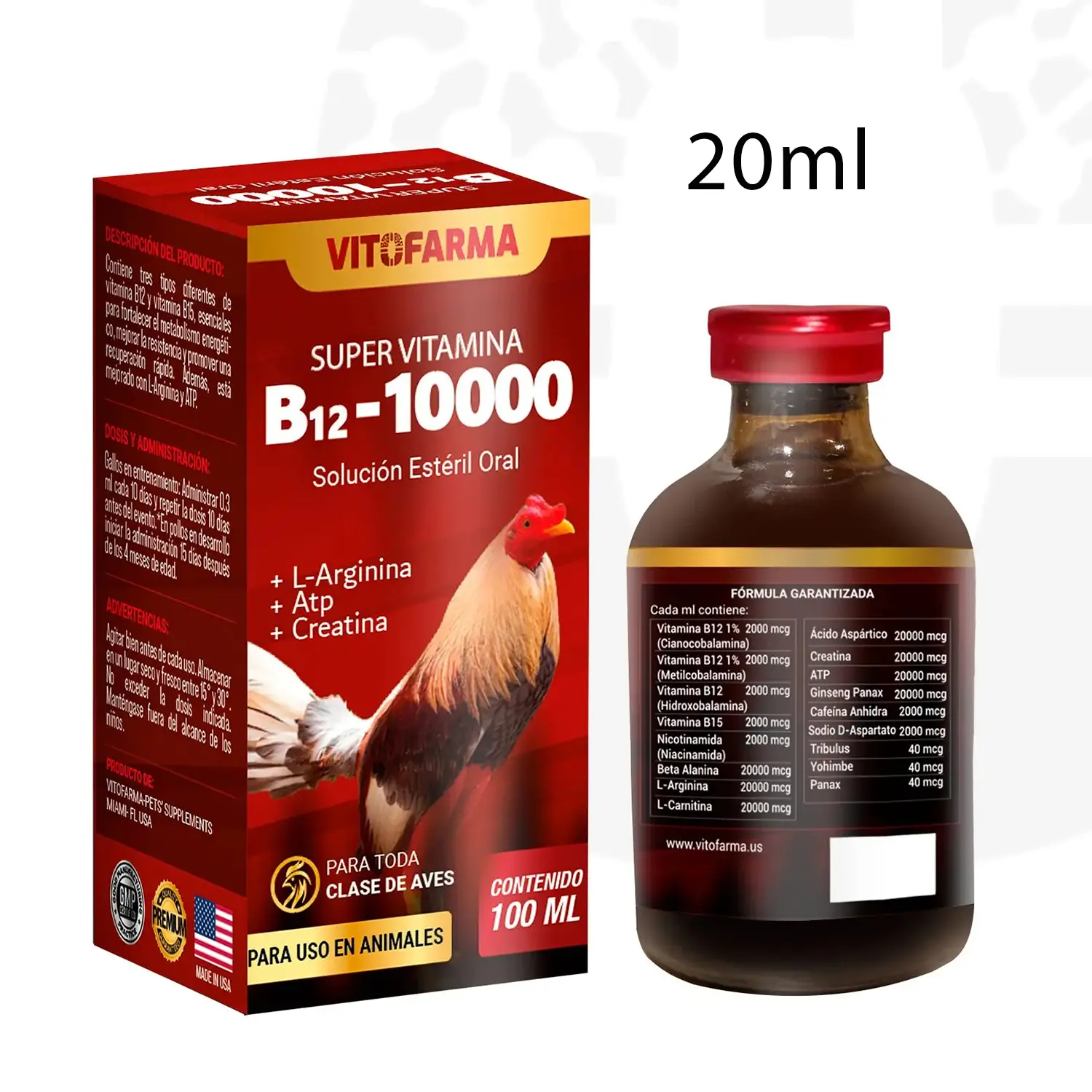 B-12 10000 Oral Liquid Supplements Roosters, Chickens, Poultry Vitamins Natural Product - 20ml Health Support for Roosters