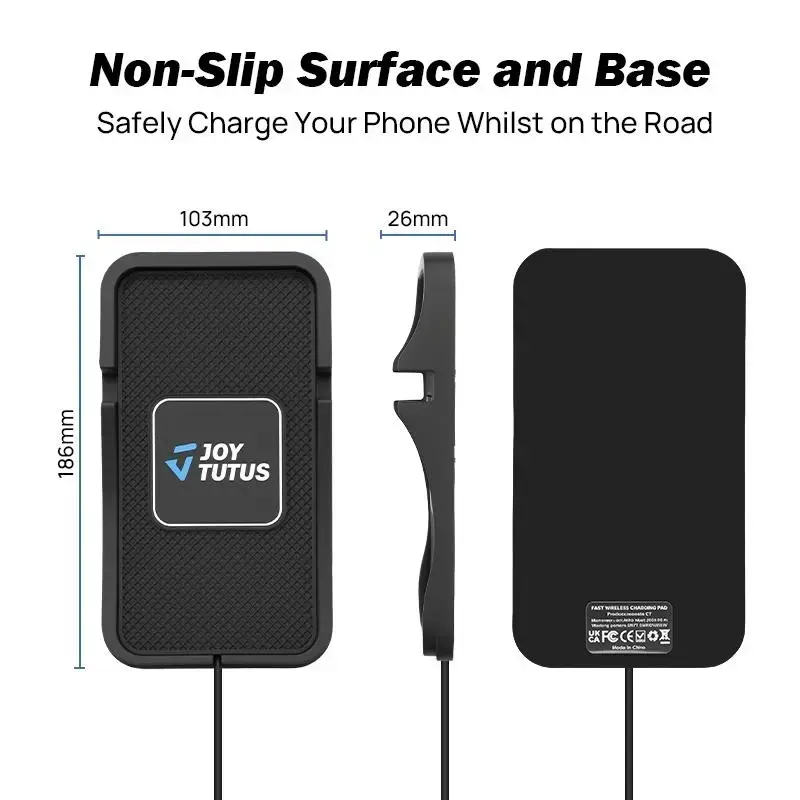Joytutus Wireless Car Charging Pad—Supports 15W Automatic Fast Charging Output. Designed Specifically for SUVs, Trucks, and RVs, Features a Non-slip Rubber Base and a Hands-free Stand Function—an Essential and Practical Accessory for Your Travels