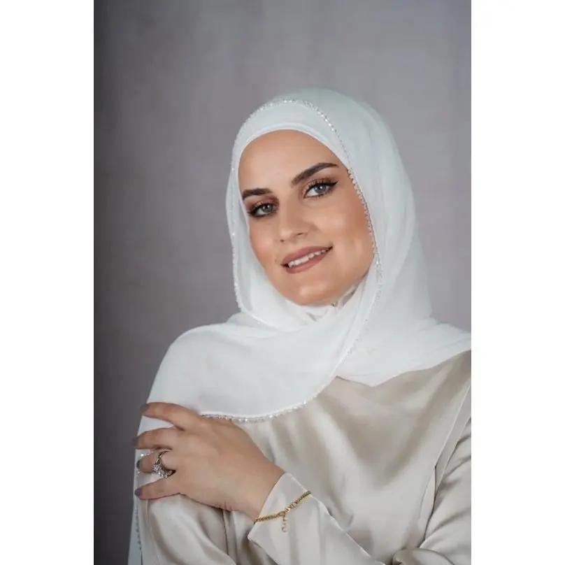 Elegant hijab designed with a delicate shimmer edge for a refined and feminine look. Made from soft, lightweight handmade fabric, perfect for everyday wear and special occasions.