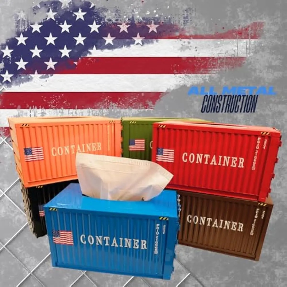Add a bold, industrial touch to your space with this Shipping Container Tissue Box Cover! Designed to resemble a mini cargo container, this sturdy, all-metal tissue holder is both durable and stylish, making it a perfect accent for any setting. It fits XL US tissue boxes, ensuring compatibility with most standard brands. Whether you're decorating a home, office, restaurant, café, bar, garage, or man cave, this unique tissue box cover adds a cool and functional conversation piece to any space. ✨ Why Youll Love It: ✔ Unique Shipping Container Design – Brings an industrial, rugged look to your space, perfect for modern, loft-style, or themed décor. ✔ Sturdy All-Metal Construction – Built to last with high-quality metal, providing a durable and long-lasting tissue holder. ✔ Fits XL US Tissue Boxes – Compatible with standard and extra-large tissue boxes, making it practical for everyday use. ✔ Versatile for Any Setting – Ideal for homes, offices, restaurants, cafés, bars, garages, and man caves—a great gift for industrial design lovers! ✔ Easy to Use – Simply place your tissue box inside and pull tissues through the top opening for quick and convenient access. 🚢 Upgrade your décor with this rugged and stylish Shipping Container Tissue Box Cover—perfect for adding personality to any space! 🚛✨